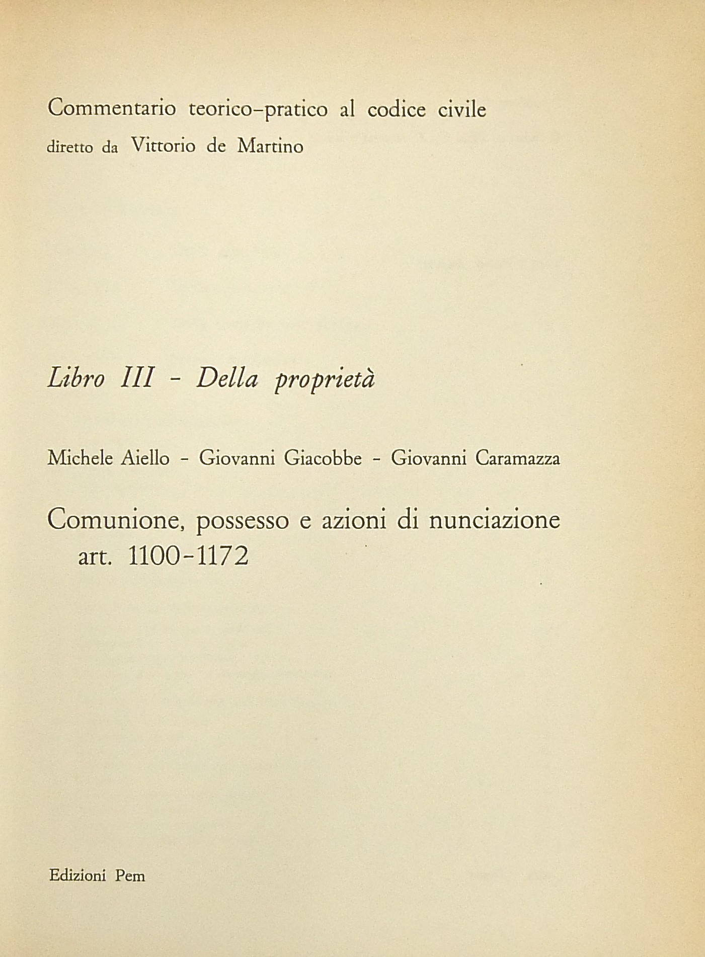 Comunione, possesso e azioni di nunciazione. Art. 1100-1172