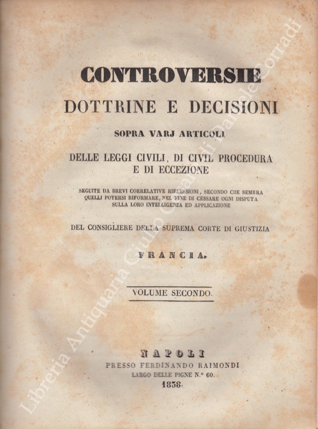 Controversie dottrine e decisioni sopra vari articoli delle leggi civili, di civil procedura e di eccezione seguite da brevi correlative riflessioni, secondo che sembra quelli potersi riformare, nel fine di cessare ogni disputa sulla loro intelligenza ed applicazione