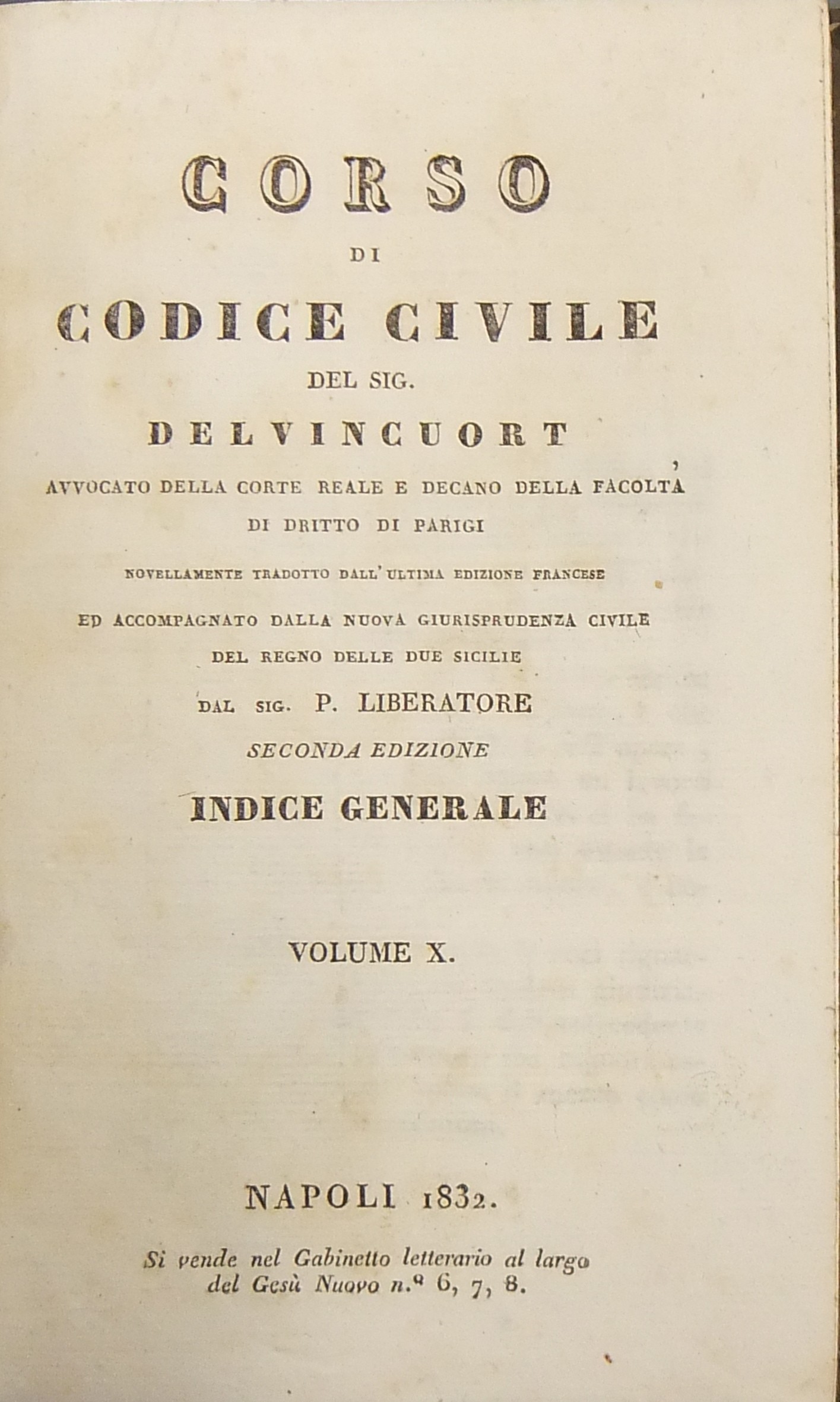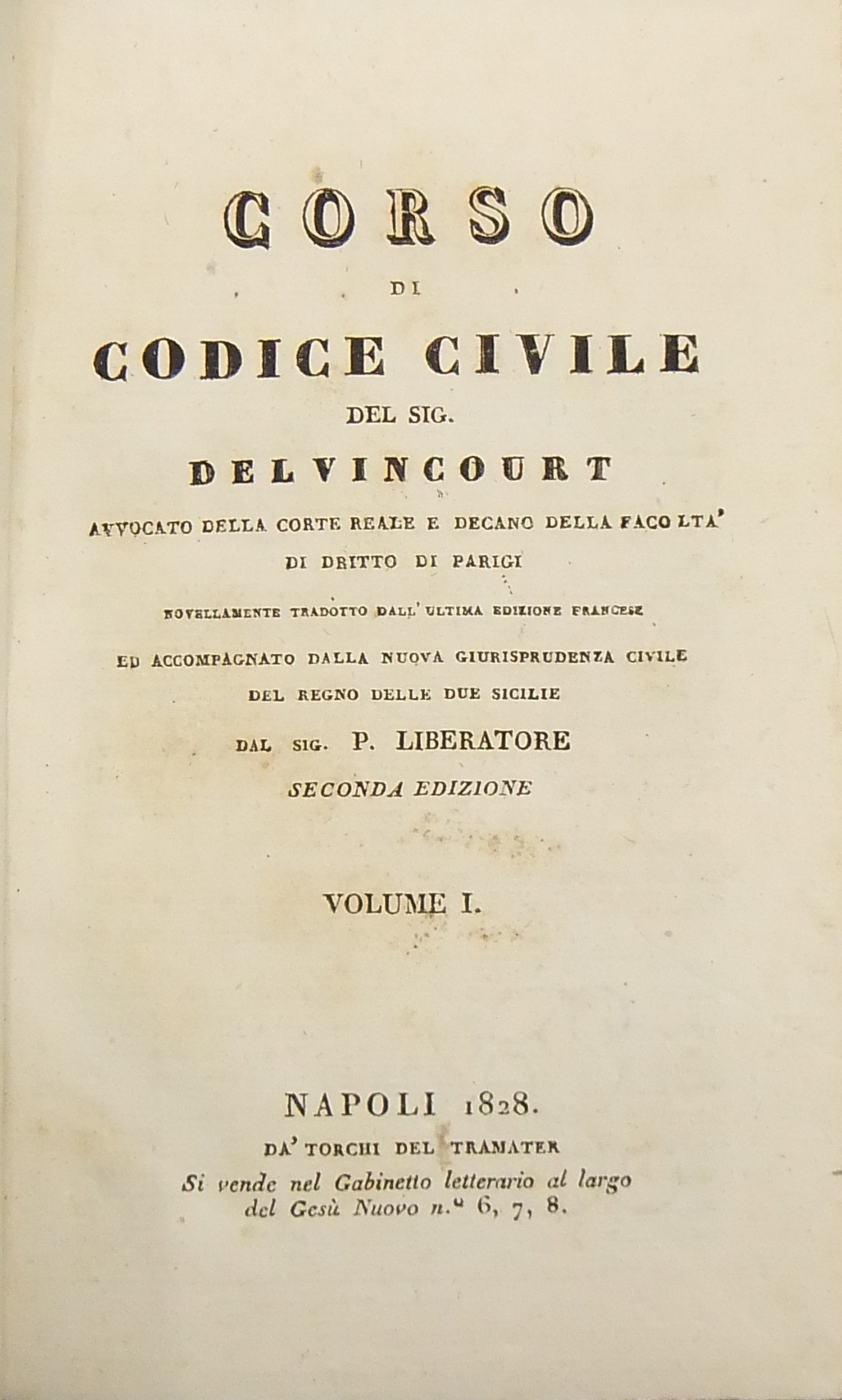 Corso di codice civile. Novellamente tradotto dall'ultima edizione francese ed accompagnato dalla nuova giurisprudenza civile del Regno delle Due Sicilie dal Sig. P. Liberatore