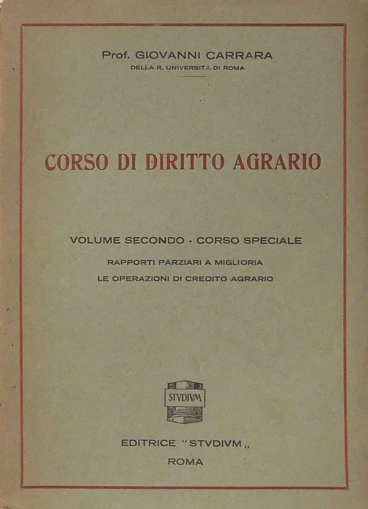 Corso di diritto agrario. Vol. I. Vol. II - Corso speciale. Rapporti parziali a miglioria. Le operazioni di credito agrario