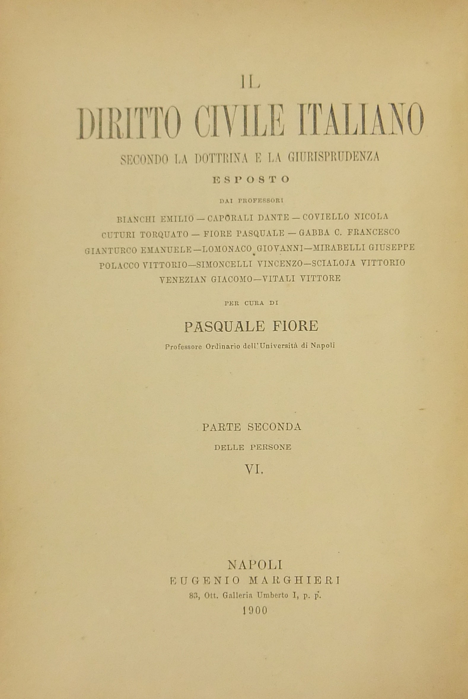 Collana: Il Diritto Civile Italiano secondo la dottrina e la giurisprudenza esposto da Abello Bianchi Brugi Coviello Cuturi Dusi Ferrara Ferrini Fiore Lomonaco Mirabelli Piola-Caselli Ramponi Simoncelli Venezian Vitali