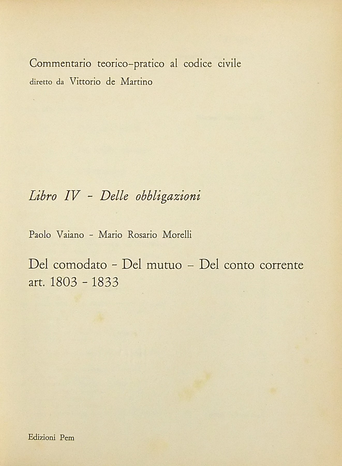 Numero Collana: Libro IV - Delle obbligazioni