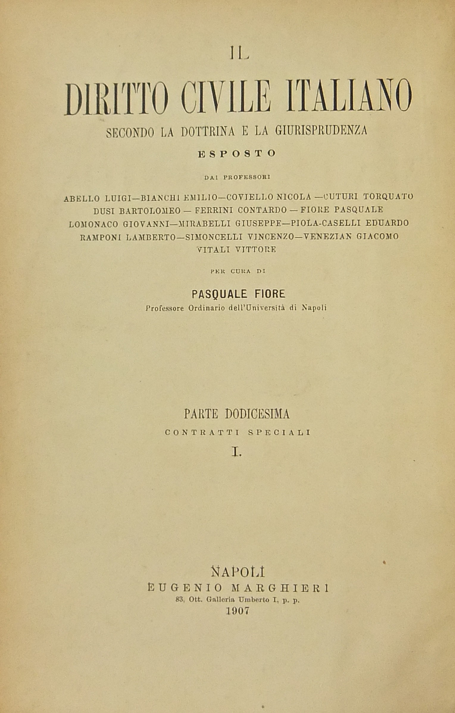Collana: Il Diritto Civile Italiano secondo la dottrina e la giurisprudenza esposto da Abello Bianchi Brugi Coviello Cuturi Dusi Ferrara Ferrini Fiore Lomonaco Mirabelli Piola-Caselli Ramponi Simoncelli Venezian Vitali