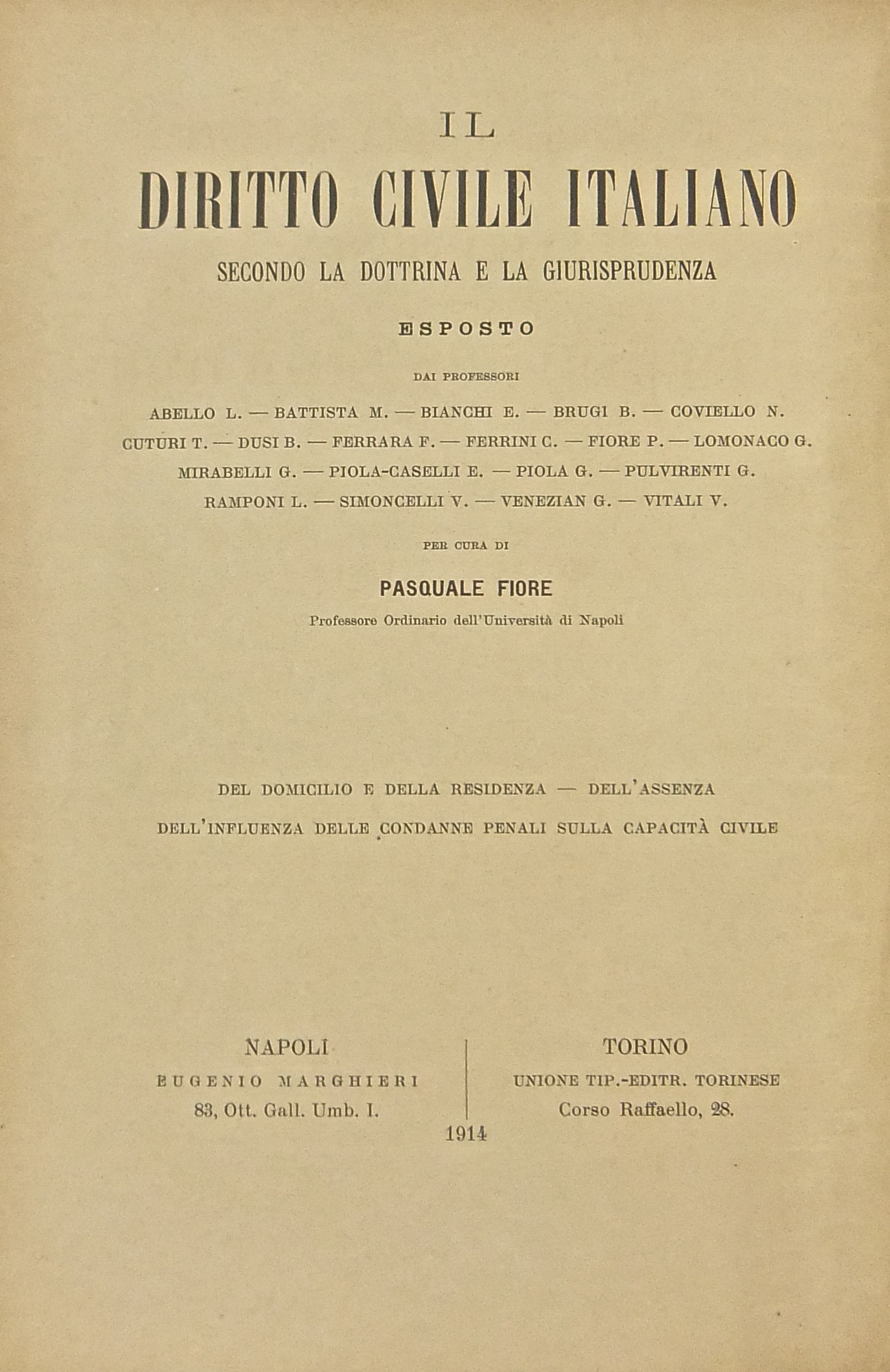 Collana: Il Diritto Civile Italiano secondo la dottrina e la giurisprudenza esposto da Abello Bianchi Brugi Coviello Cuturi Dusi Ferrara Ferrini Fiore Lomonaco Mirabelli Piola-Caselli Ramponi Simoncelli Venezian Vitali