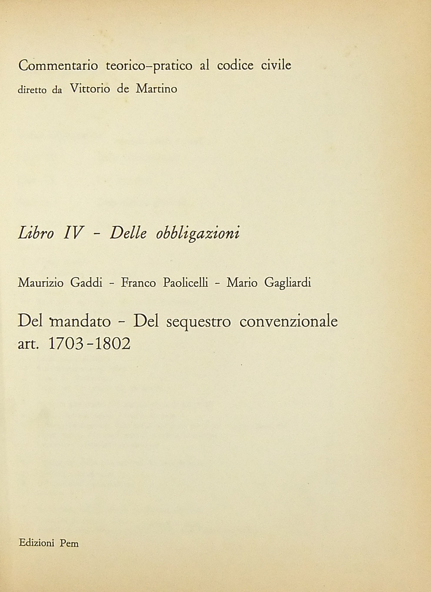 Del mandato. Del sequestro convenzionale. Art. 1703-1802
