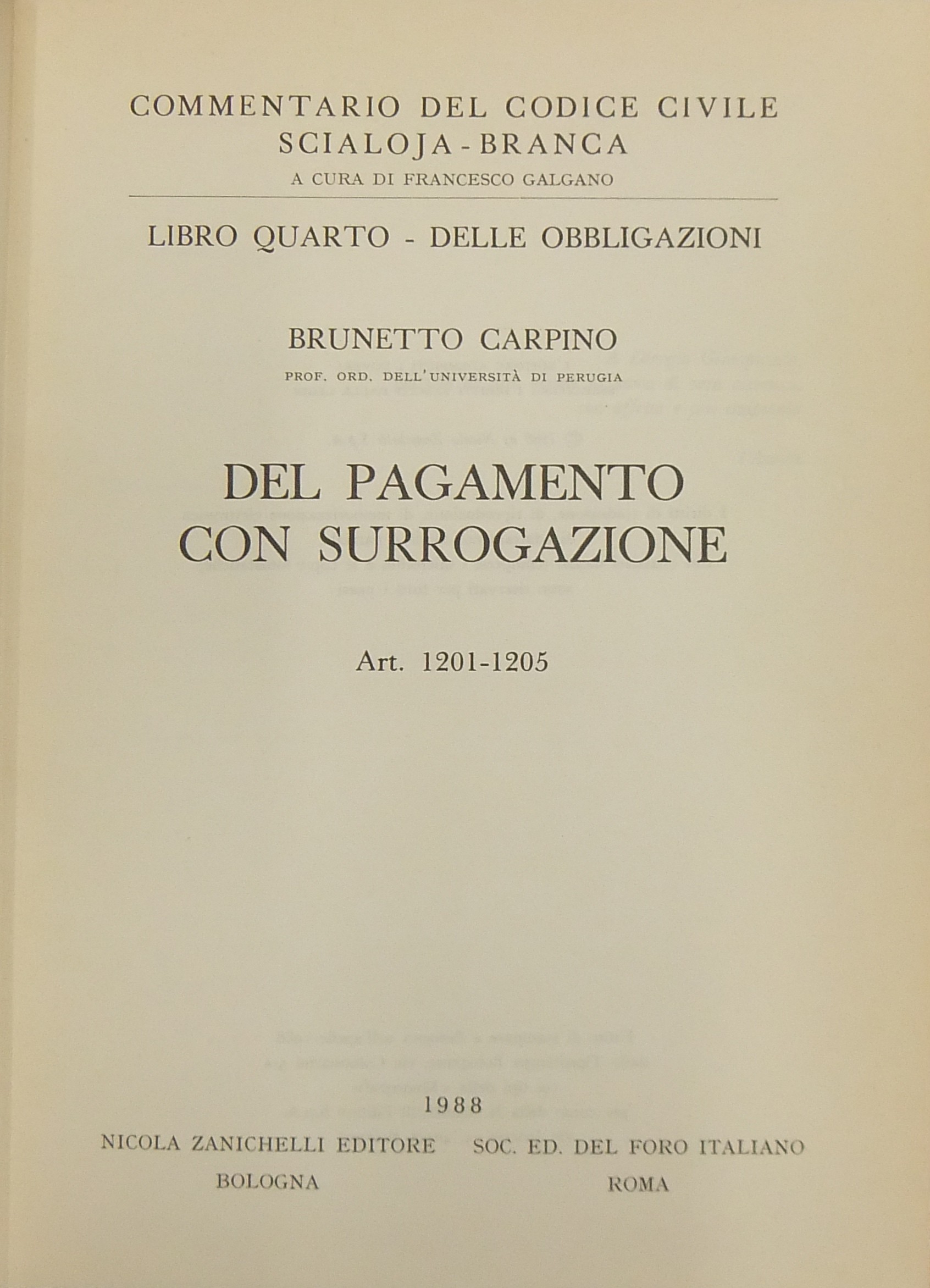 Direttore Collana: F. Galgano (A. Scialoja e G. Branca)