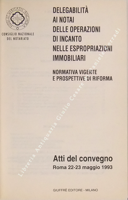 Delegabilità ai notai delle operazioni di incanto nelle espropriazioni immobiliari. Normativa vigente e prospettive di riforma. Atti del convegno Roma 22-23 maggio 1993