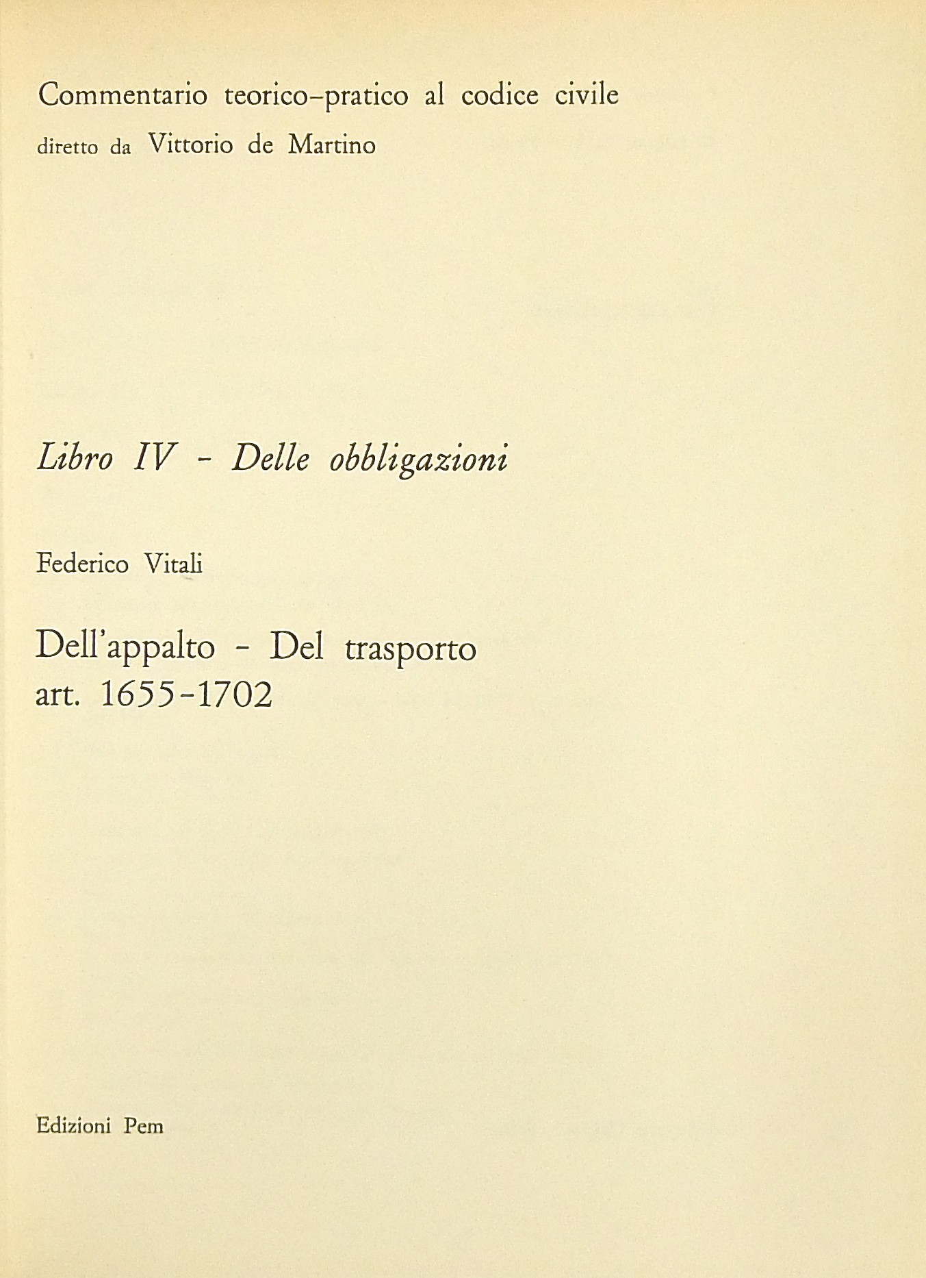 Numero Collana: Libro IV - Delle obbligazioni