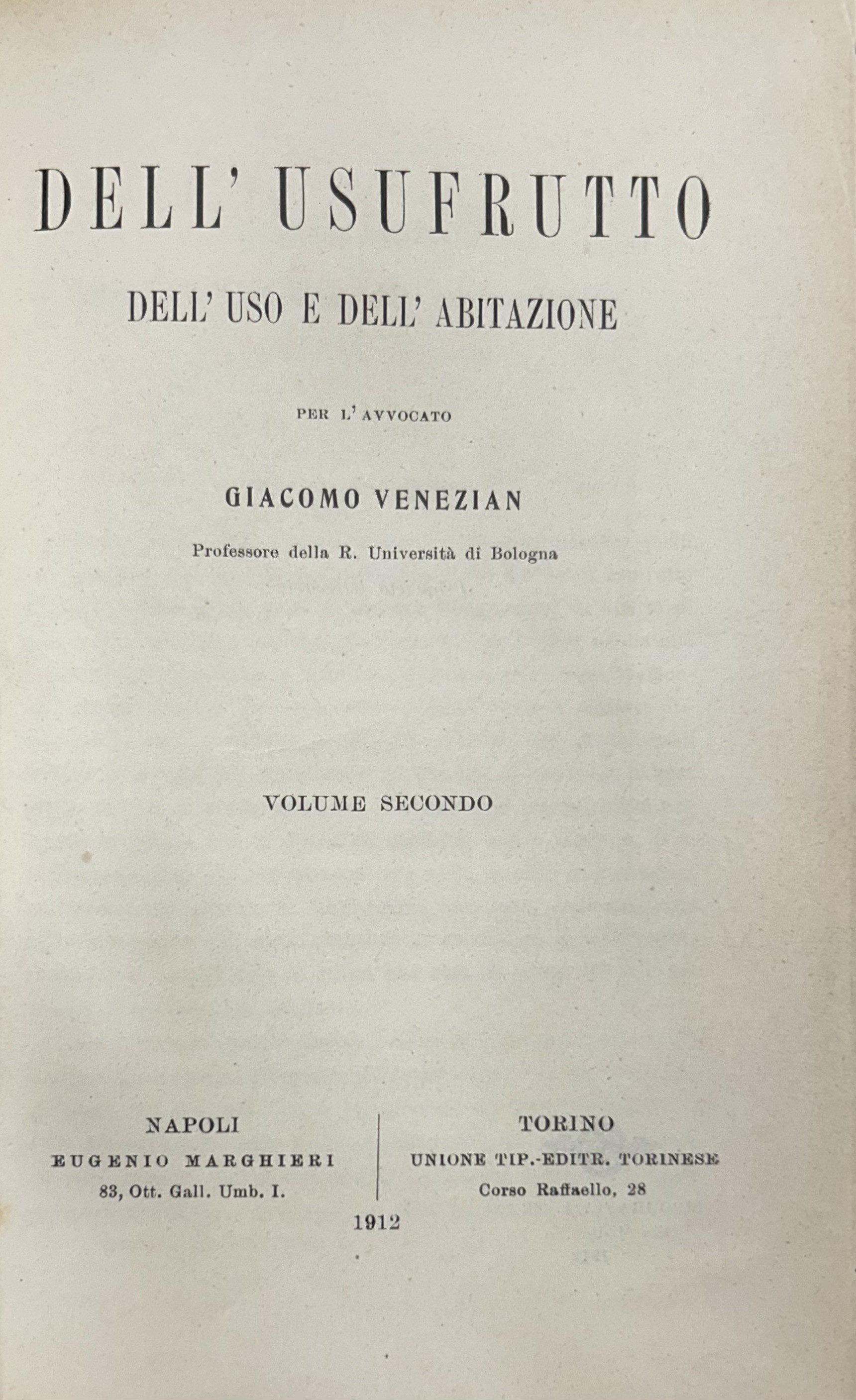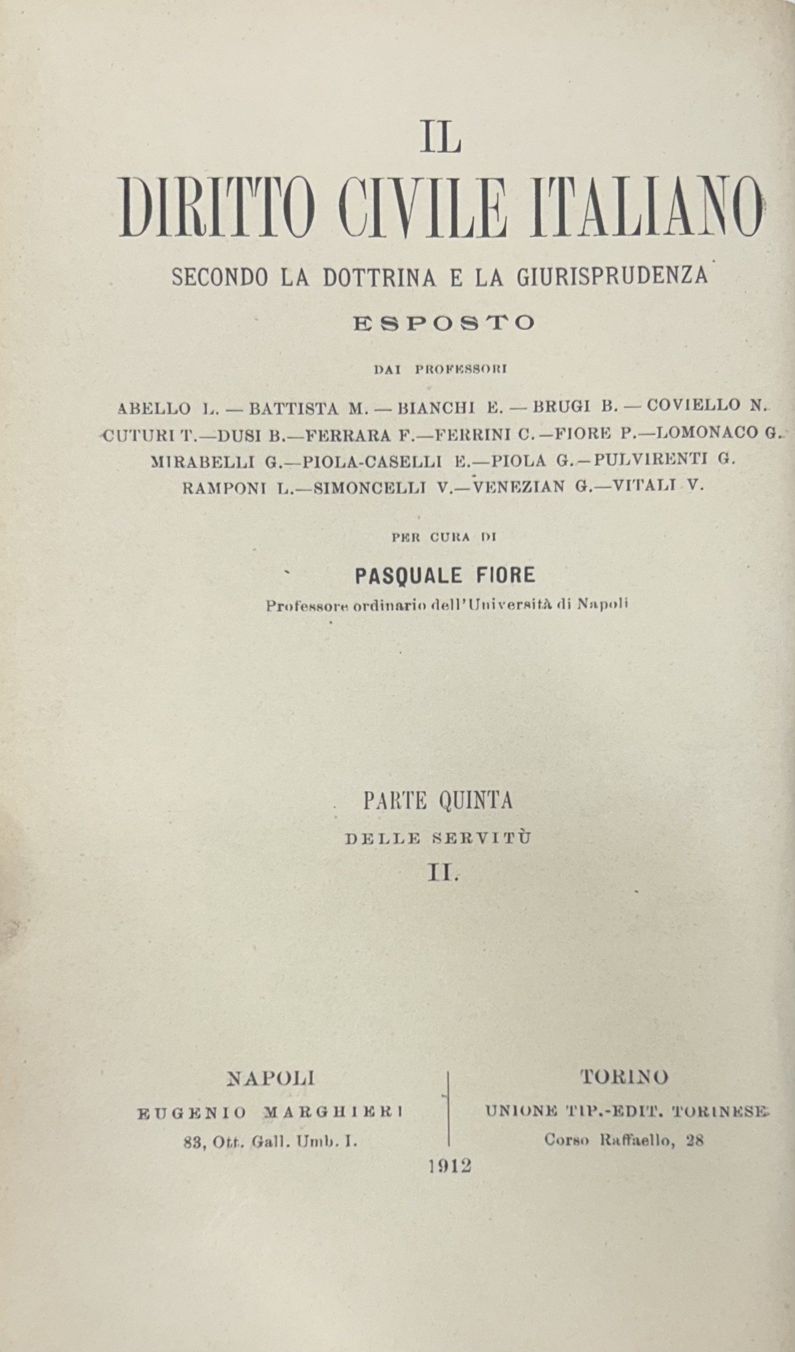 Collana: Il Diritto Civile Italiano secondo la dottrina e la giurisprudenza esposto da Abello Bianchi Brugi Coviello Cuturi Dusi Ferrara Ferrini Fiore Lomonaco Mirabelli Piola-Caselli Ramponi Simoncelli Venezian Vitali