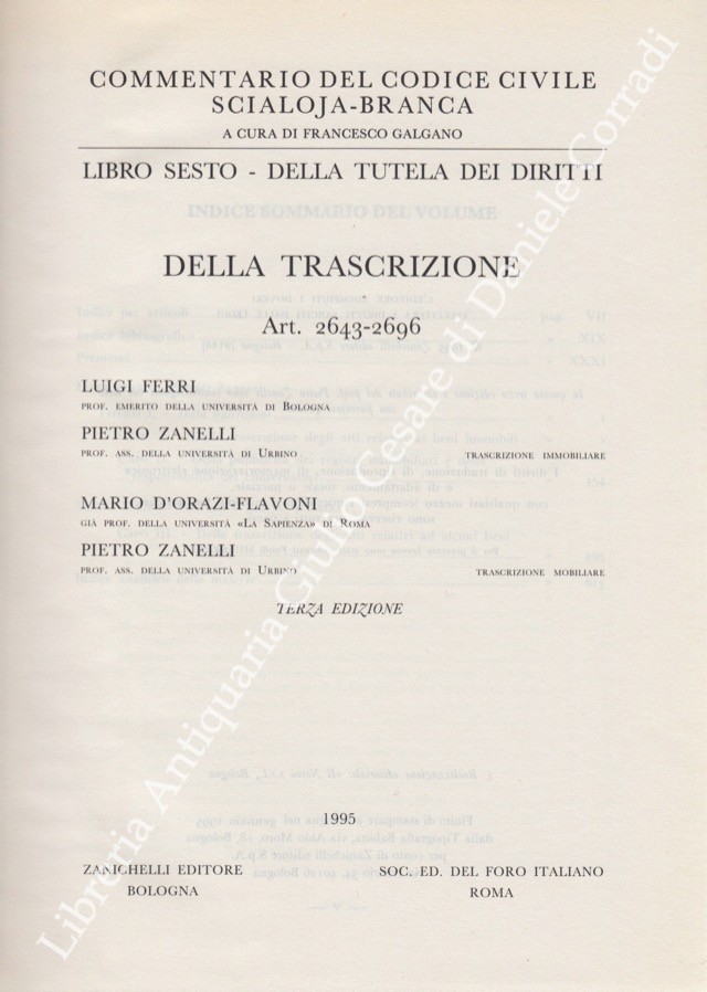 Della trascrizione. Art. 2643-2696. Trascrizione immobiliare (Ferri-Zanelli). Trascrizione mobiliare (D'Orazi Flavoni-Zanelli)