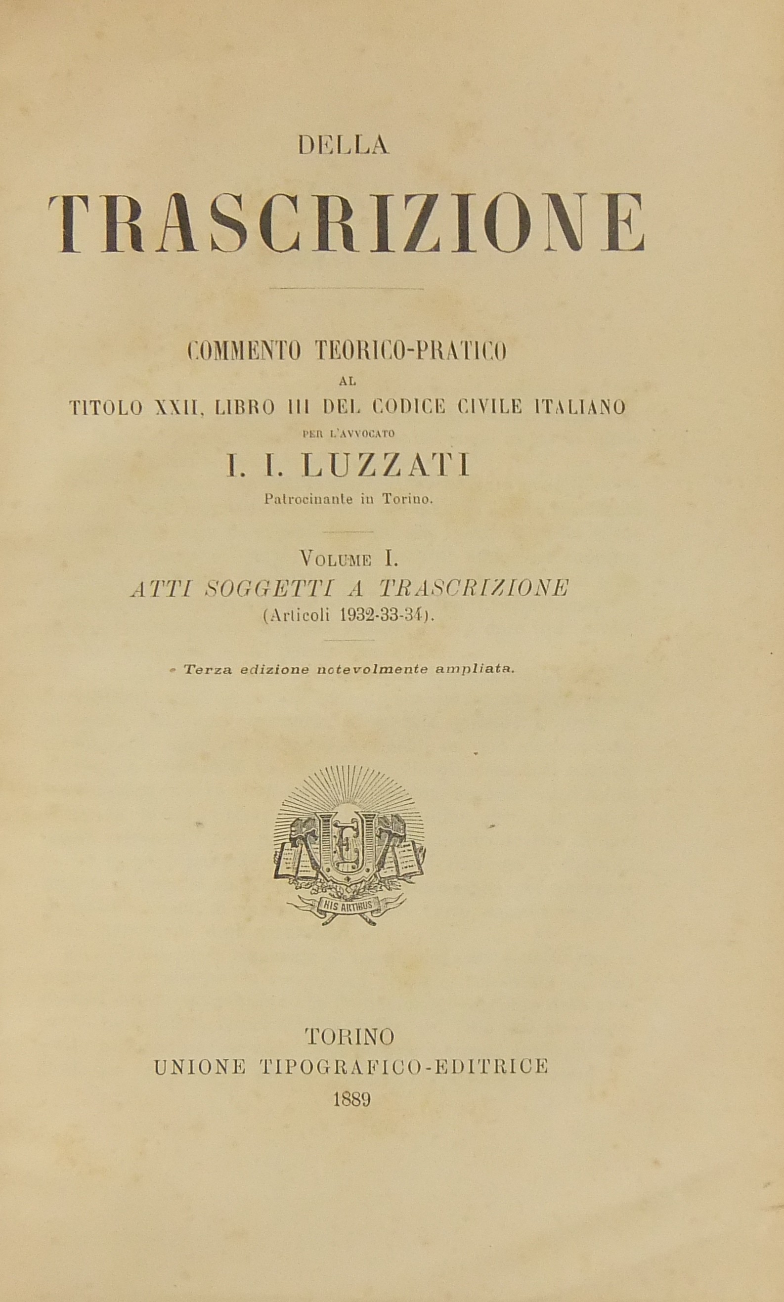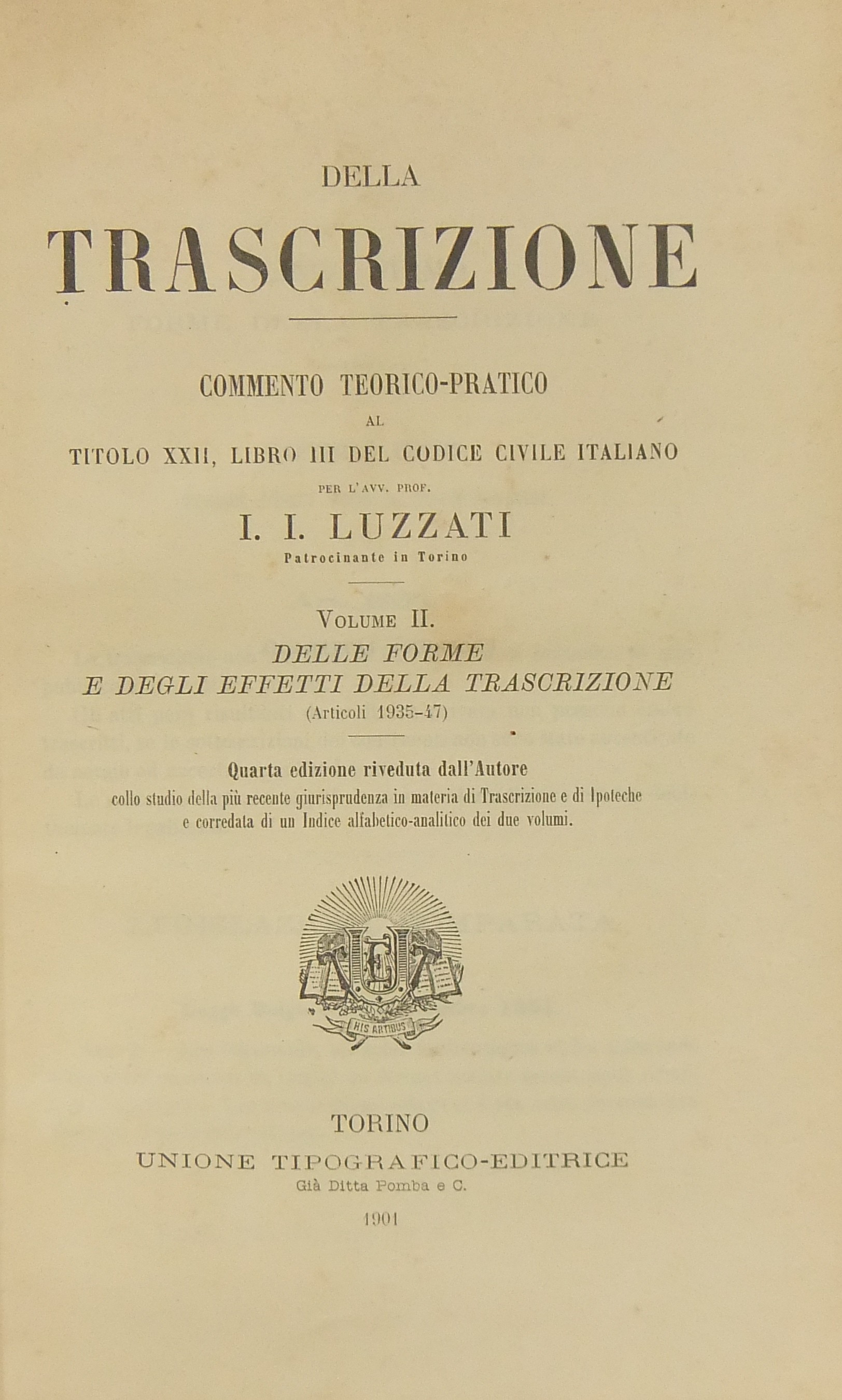 Della trascrizione. Commento teorico-pratico al titolo XXII libro III del codice civile italiano. Vol. I - Atti soggetti a trascrizione (Articoli 1932-33-34). Vol. II - Delle forme e degli effetti della trascizione (Articoli 1935-47)