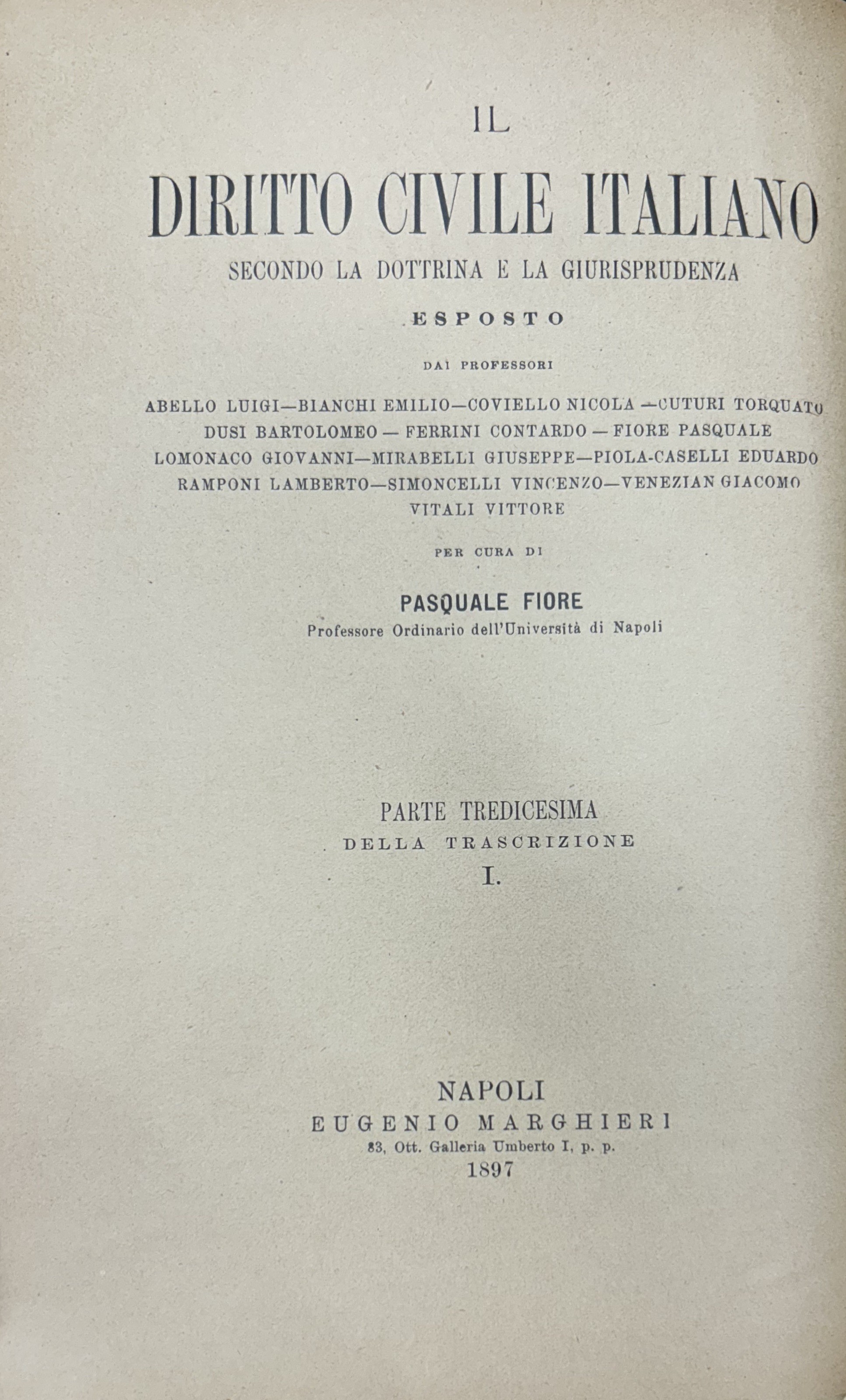 Collana: Il Diritto Civile Italiano secondo la dottrina e la giurisprudenza esposto da Abello Bianchi Brugi Coviello Cuturi Dusi Ferrara Ferrini Fiore Lomonaco Mirabelli Piola-Caselli Ramponi Simoncelli Venezian Vitali
