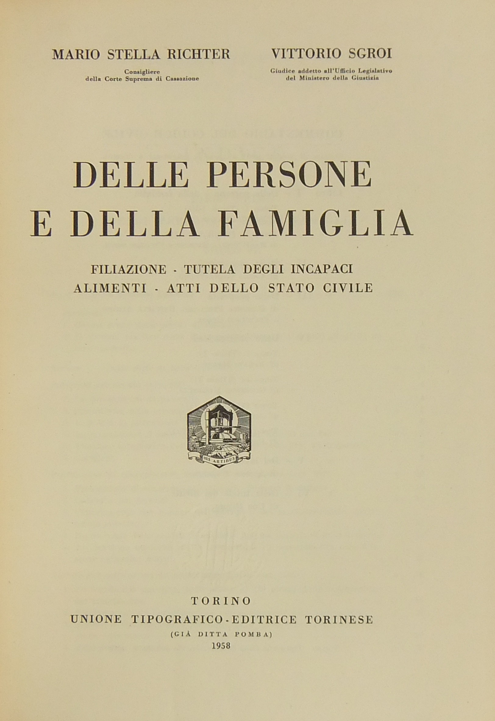 Delle persone e della famiglia - Filiazione. Tutela degli incapaci. Alimenti. Atti dello stato civile. (Artt. 231-455)