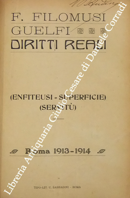Diritti reali. (Enfiteusi; Superficie; Servitù). 1913-1914. UNITO A: Diritti reali ad uso di lezioni. Introduzione. Teoria delle cose e dei beni. Proprietà . Modi di acquisto. Possesso, Ermanno Lescher, 1910, seconda edizione riveduta e completata, pp. (2) + 317