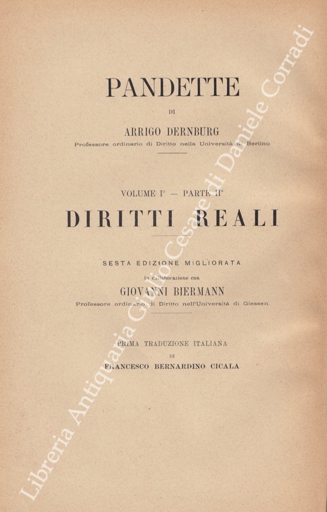 Pandette. Vol. I - Parte II - Diritti reali. Prima traduzione dal tedesco sulla 6a edizione di Francesco Bernardino Cicala