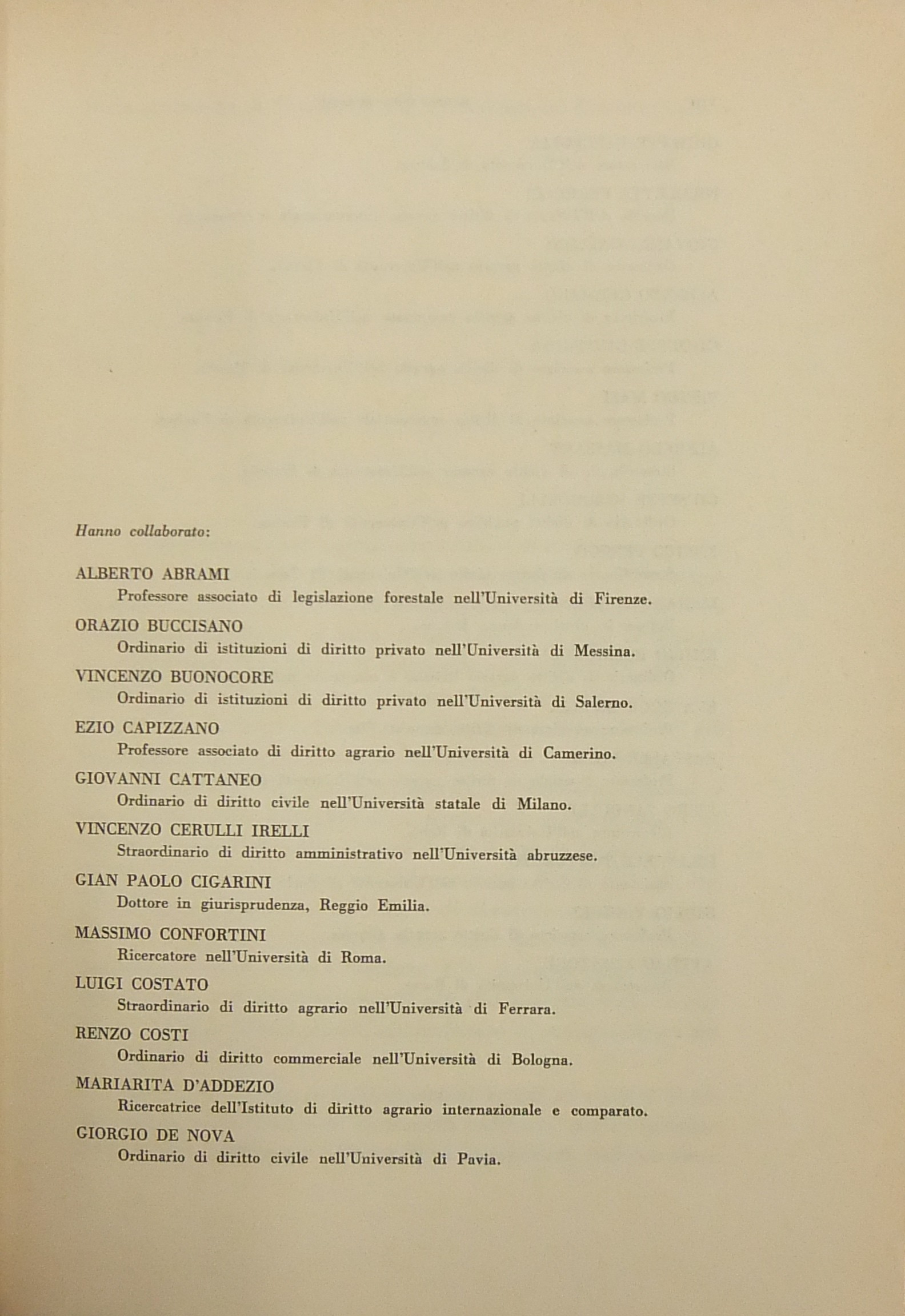 Scritti di: Abrami, Buccisano, Buonocore, Capizzano, Cattaneo, Cerulli Irelli, Cigarini, Confortini, Costato, Costi, D’Addezio, De Nova, Fauceglia, Ferrucci, Galloni, Germanò, Giuffrida, Masi, Massart, Morbidelli, Perego, Rook Basile, Rossi R., Sandulli P., Tortoreto, Vignoli, Zimatore.