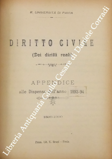 Diritto civile (dei diritti reali). Riproduzione delle Dispense del 1893-94. UNITO A: Diritto civile (dei diritti reali). Appendice alle Dispense dell'anno 1893-94