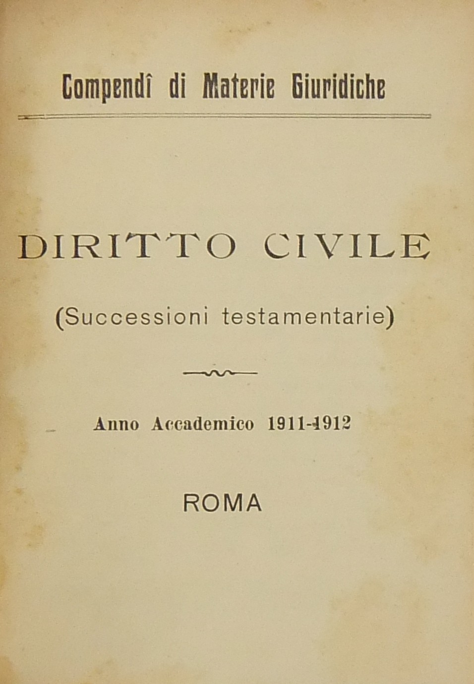 Diritto civile. Successioni. UNITO A: Diritto civile. (Successioni testamentarie). Anno accademico 1911-1912