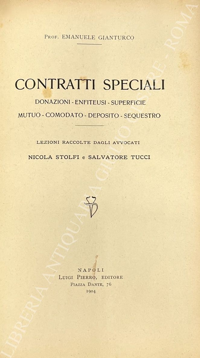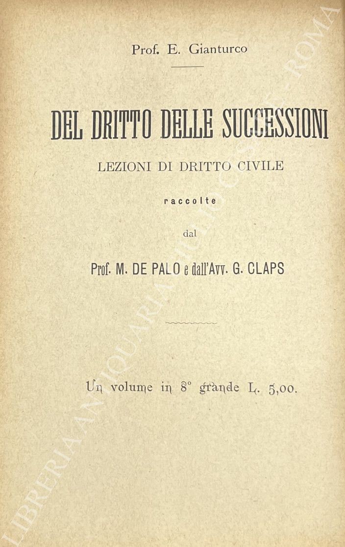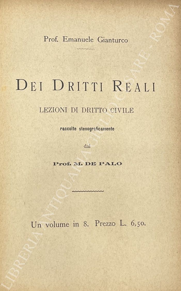 Diritto delle obbligazioni. Lezioni di diritto civile raccolte da Alfonso Rubilli e Luigi Gianturco. UNITO A: Del dritto delle successioni. Lezioni di dritto civile raccolte dal Prof. M. De Palo e dall'Avv. G. Claps. UNITO A: Dei Dritti Reali. Lezioni di Dritto Civile raccolte stenograficamente dal Prof. M. De Palo. UNITO A: Contratti speciali. Donazioni - Enfiteusi - Superficie - Mutuo - Comodato - Deposito - Sequestro. Lezioni raccolte dagli avvocati Nicola Stolfi e Salvatore Tucci