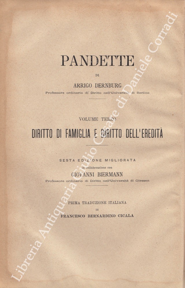 Pandette. Vol. III - Diritto di famiglia e diritto dell'eredità . Prima traduzione dal tedesco sulla 6a edizione di Francesco Bernardino Cicala