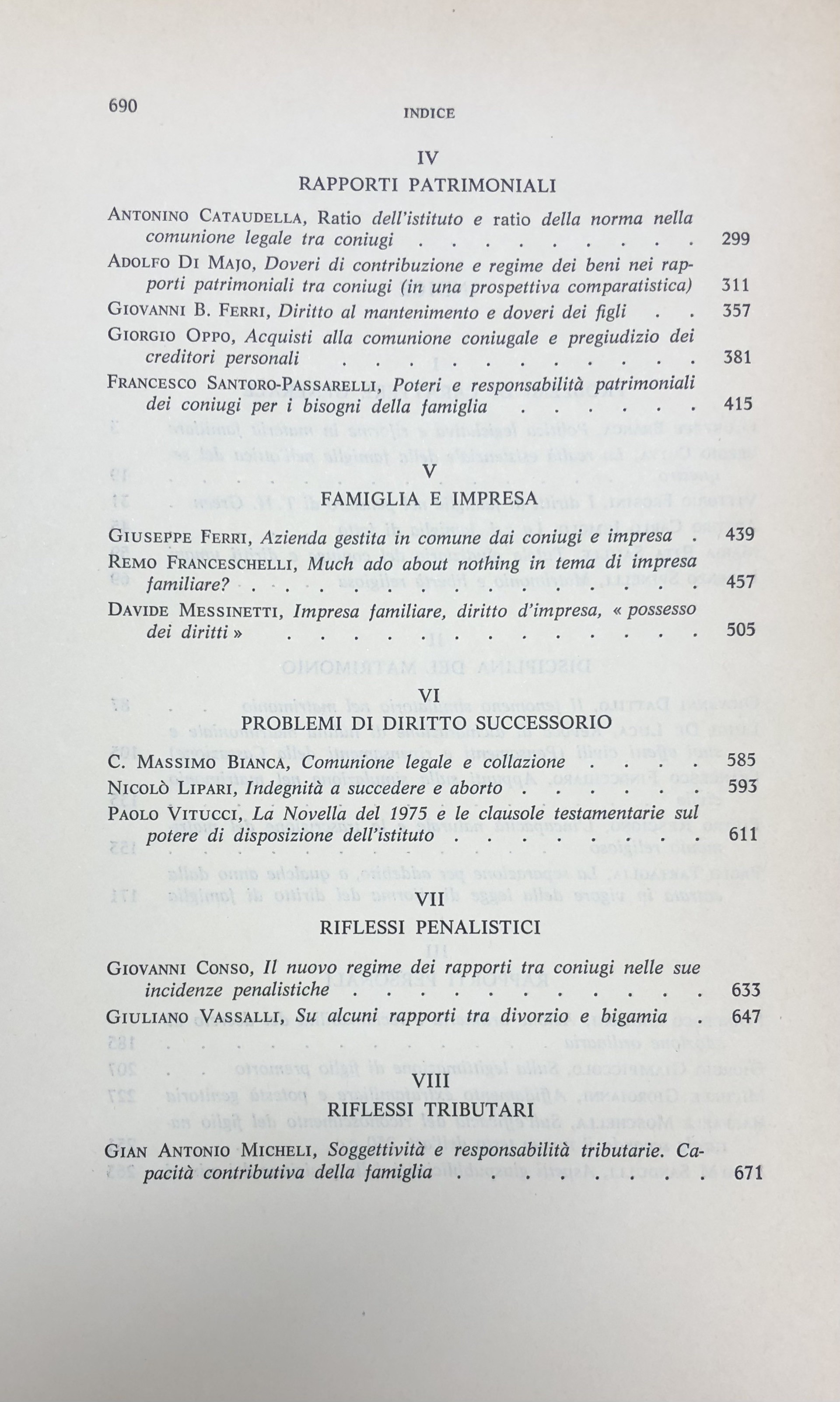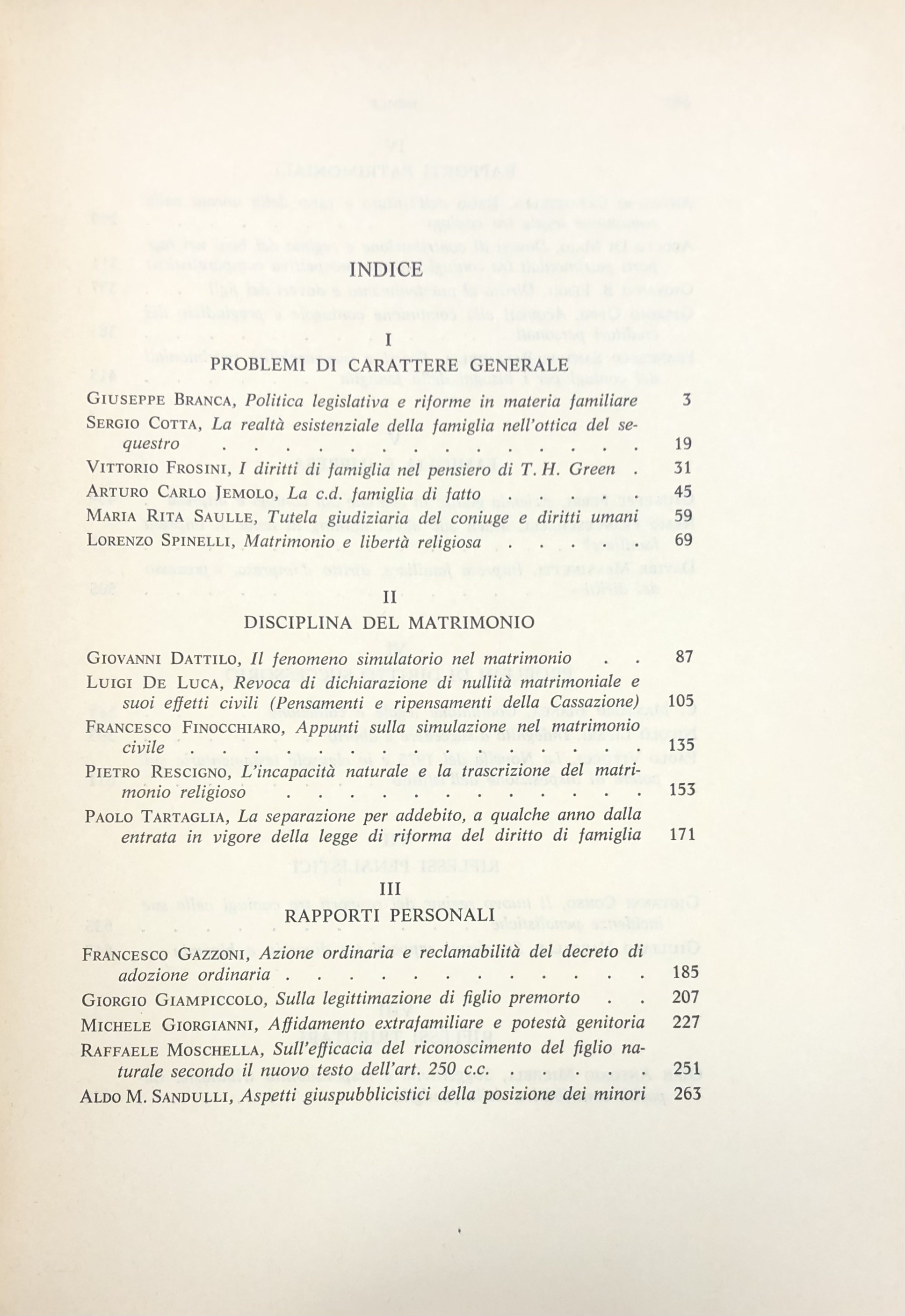 Scritti di: Bianca, Branca, Cataudella, Cotta, Conso, Dattilo, De Luca, Di Majo, Ferri G.B., Ferri G., Finocchiaro, Franceschelli, Frosini, Gazzoni, Giampiccolo, Giorgianni M., Jemolo, Lipari, Messinetti, Micheli, Moschella, Oppo, Rescigno, Sandulli, Santoro Passarelli, Saulle, Spinelli, Tartaglia, Vassalli G., Vitucci
