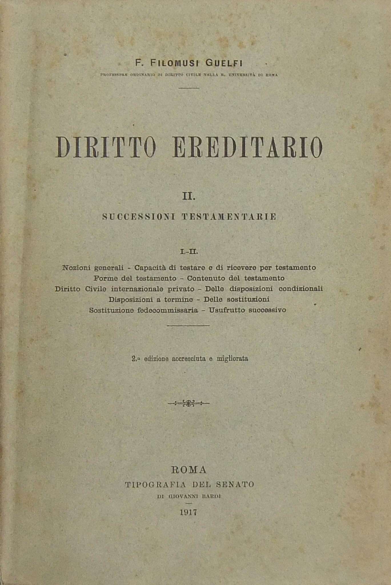 Diritto ereditario. Vol. I - Parte generale. Successioni legittime; Vol. II - Successioni testamentarie