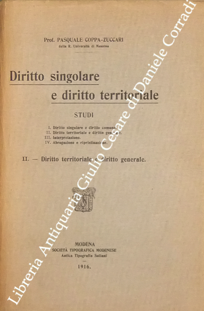 Diritto singolare e diritto territoriale. Studi. Vol. I - Diritto singolare e diritto comune; Vol. II - Diritto territoriale e diritto generale