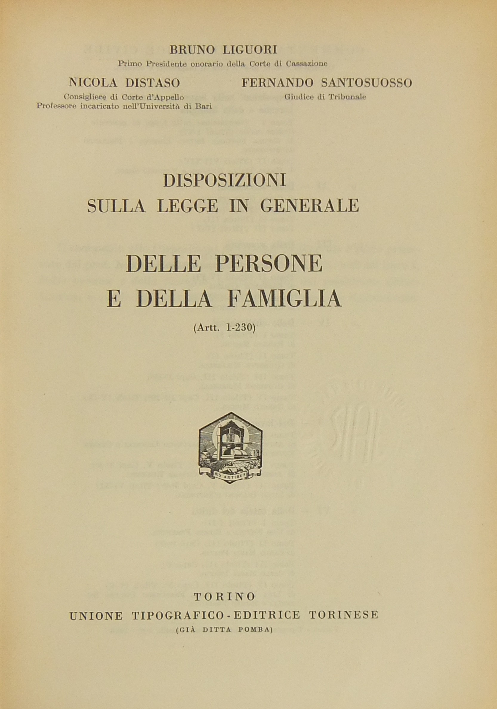 Disposizioni sulla legge in generale. Delle persone e della famiglia. (Artt. 1-230)