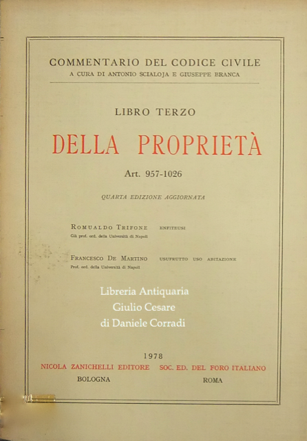 Enfiteusi (Trifone). Usufrutto uso abitazione (De Martino). Art. 957-1026