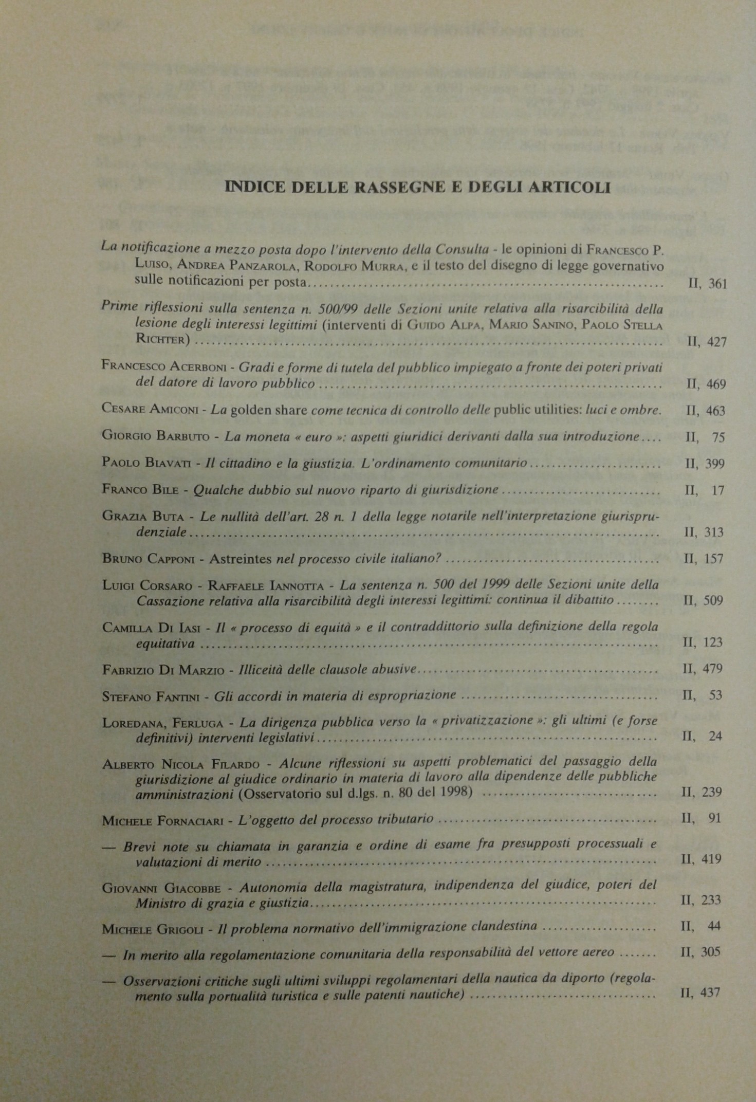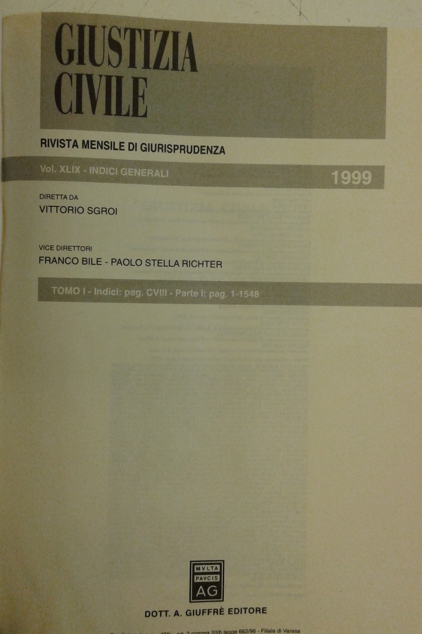 Giustizia Civile. Rivista mensile di giurisprudenza. Anno XLIX - 1999. Comitato di redazione: F. Bile, P. Stella Richter, V. Sgroi