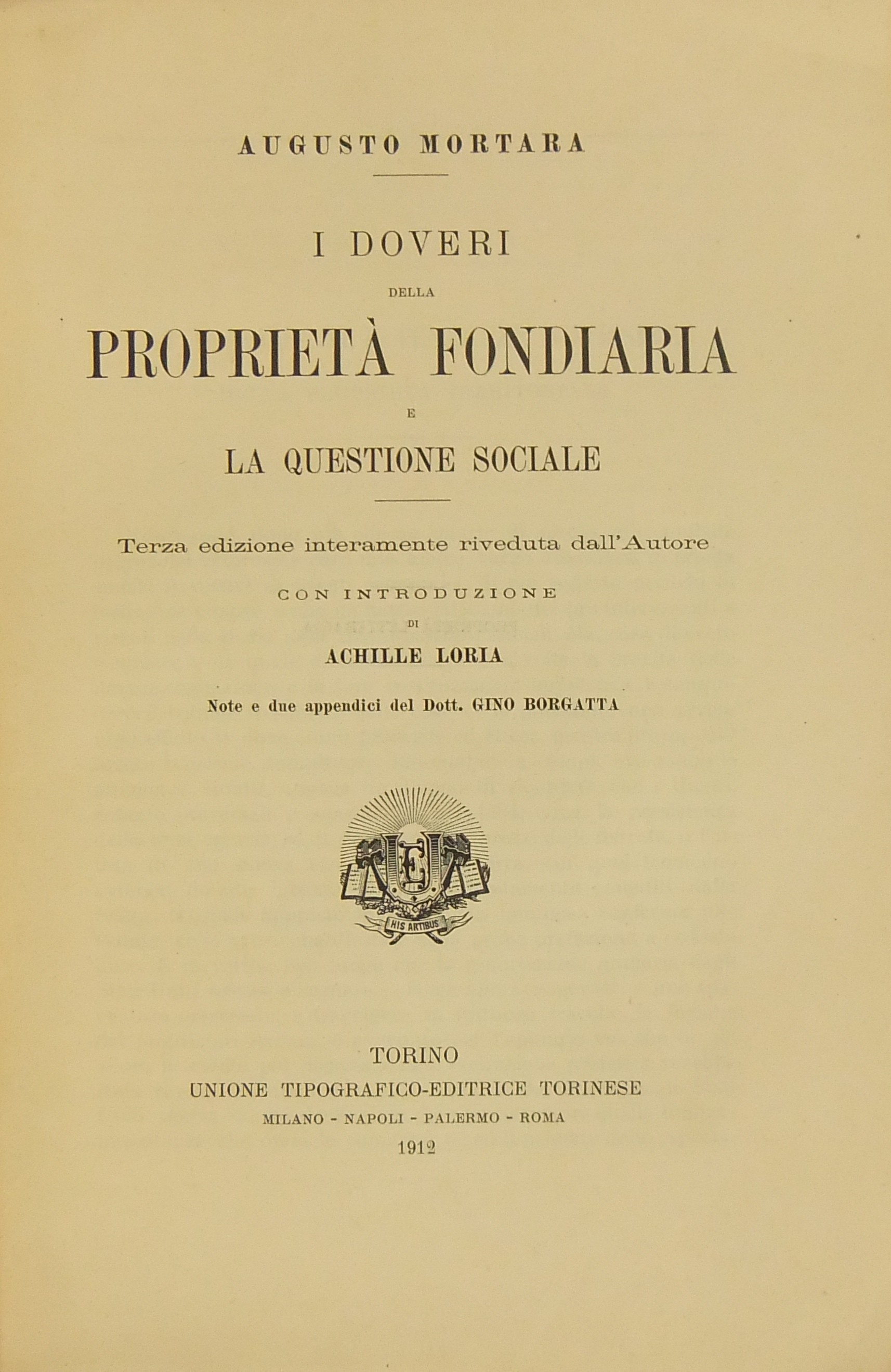 I doveri della proprietà fondiaria e la questione sociale. Con introduzione di Achille Loria. Note e due appendici del Dott. Gino Borgatta