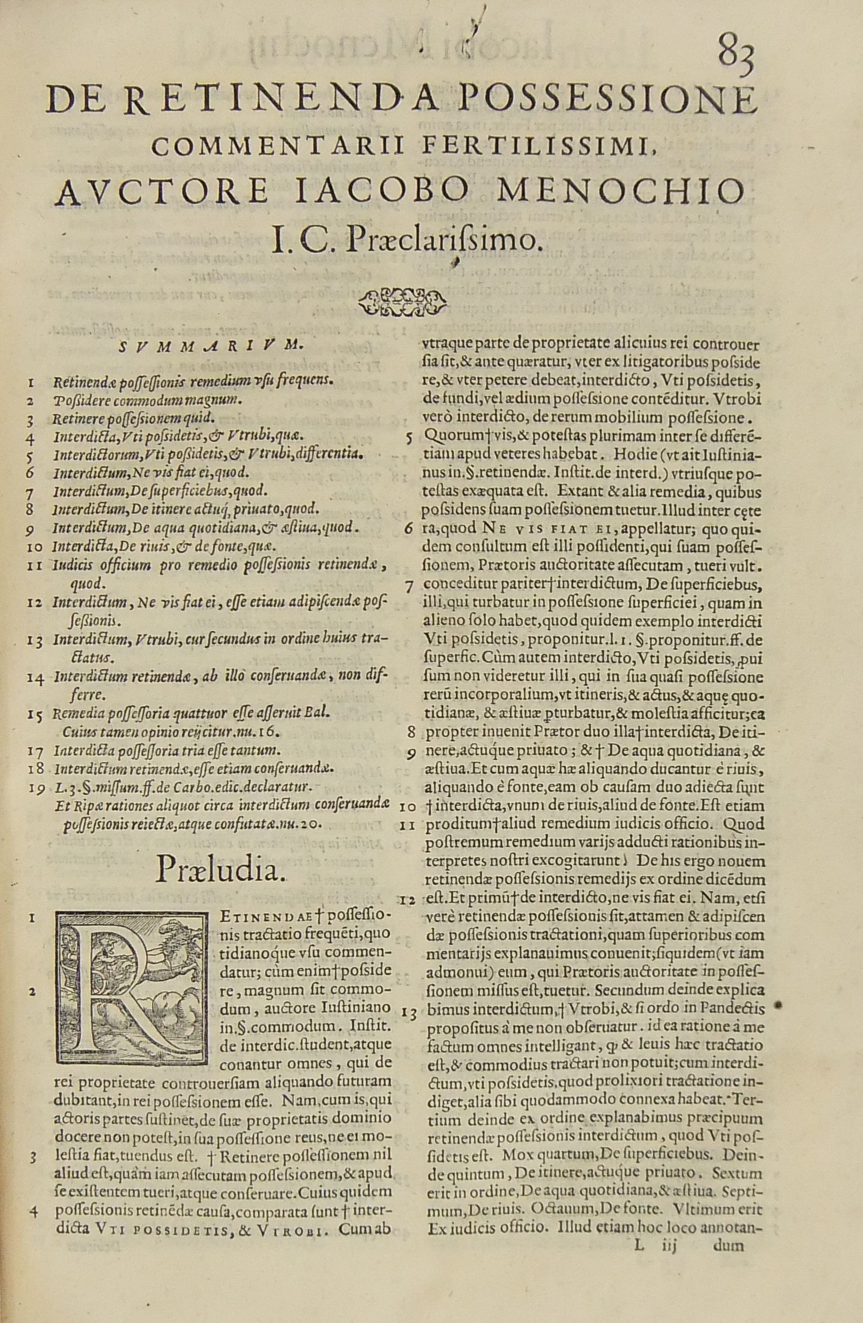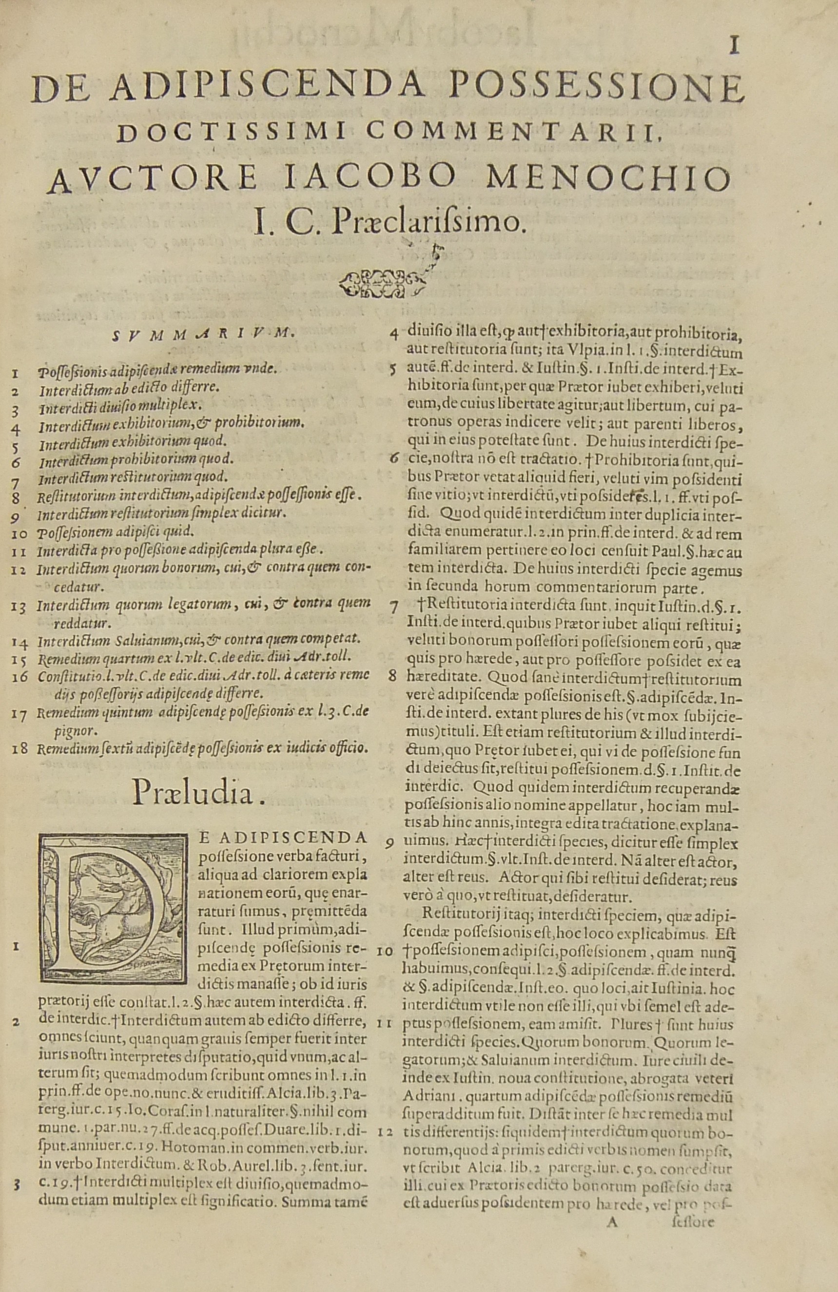 Iacobi Menochii… De adipiscenda et retinenda possessione