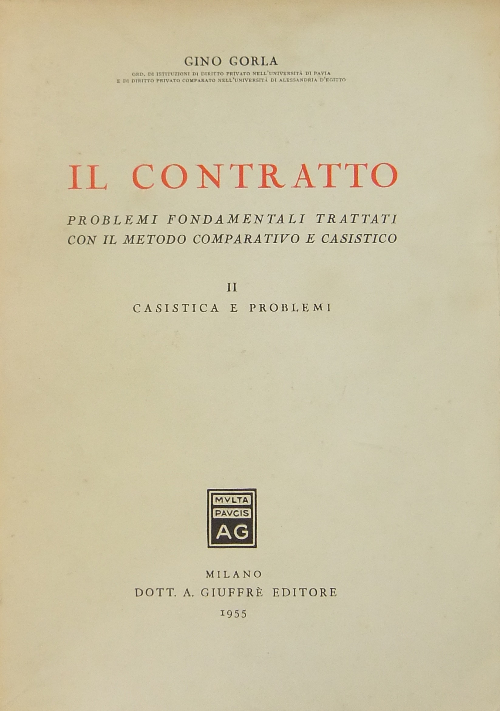 Il contratto. Vol. I - Lineamenti generali. Corso di diritto privato svolto secondo il metodo comparativo e casistico. Vol. II - Casistica e problemi. Problemi fondamentali trattati con il metodo comparativo e casistico