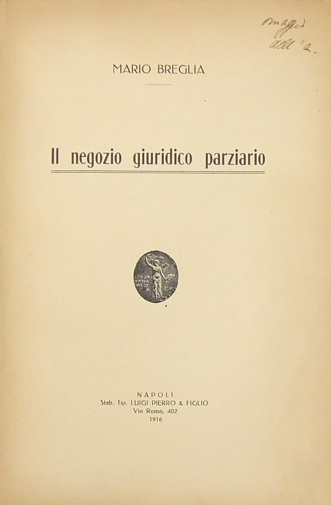 Il negozio giuridico parziario. Prefazione del Prof. Roberto de Ruggiero