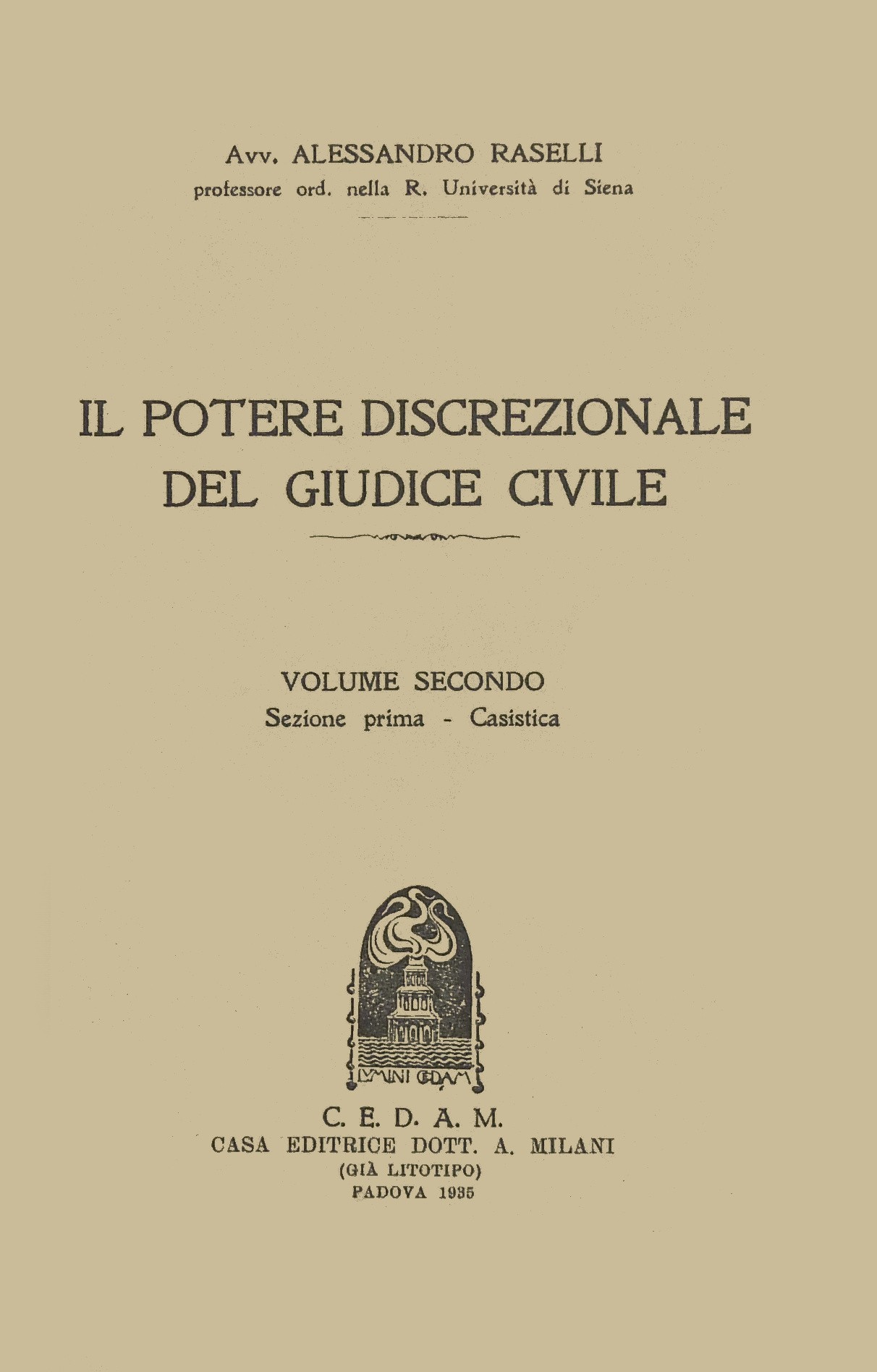 Il potere discrezionale del giudice civile. Vol. I - Esposizione critica della dottrina. Nozione generale. Vol. II - Sezione prima. Casistica