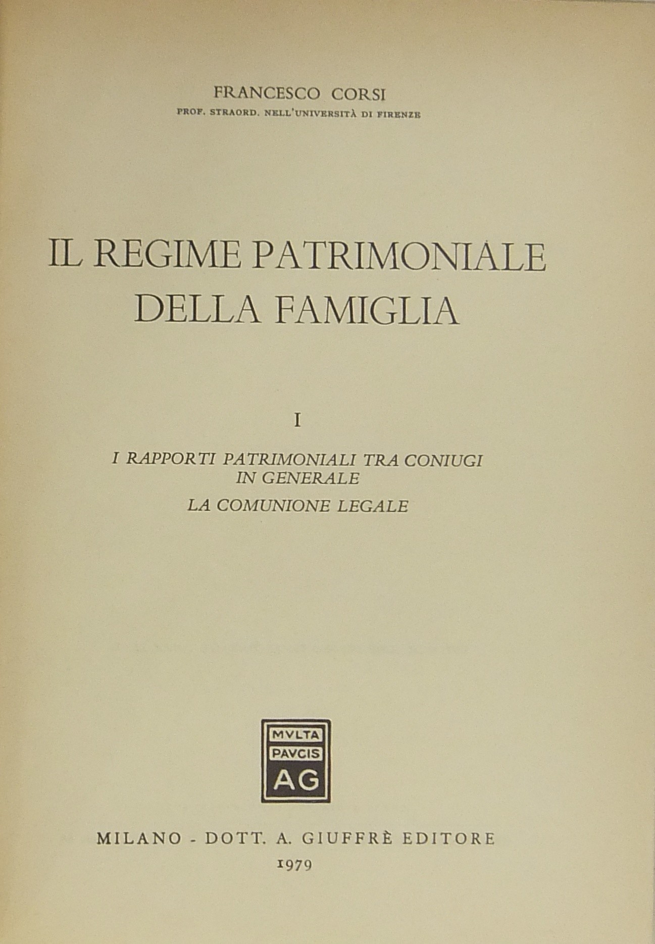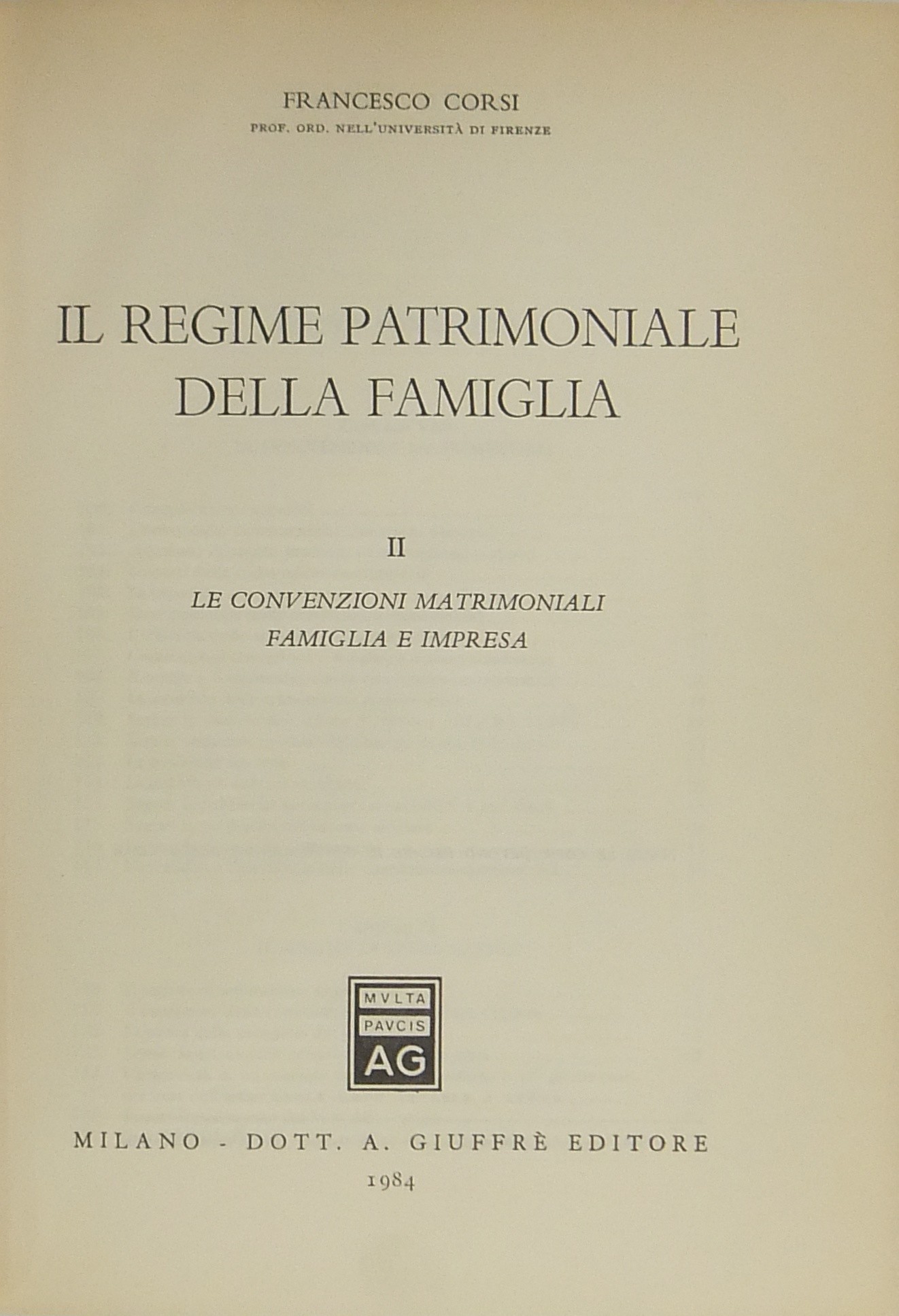 Il regime patrimoniale della famiglia. Vol. I - I rapporti patrimoniali tra coniugi in generale. La comunione legale. Vol. II - Le convenzioni matrimoniali tra famiglia e impresa