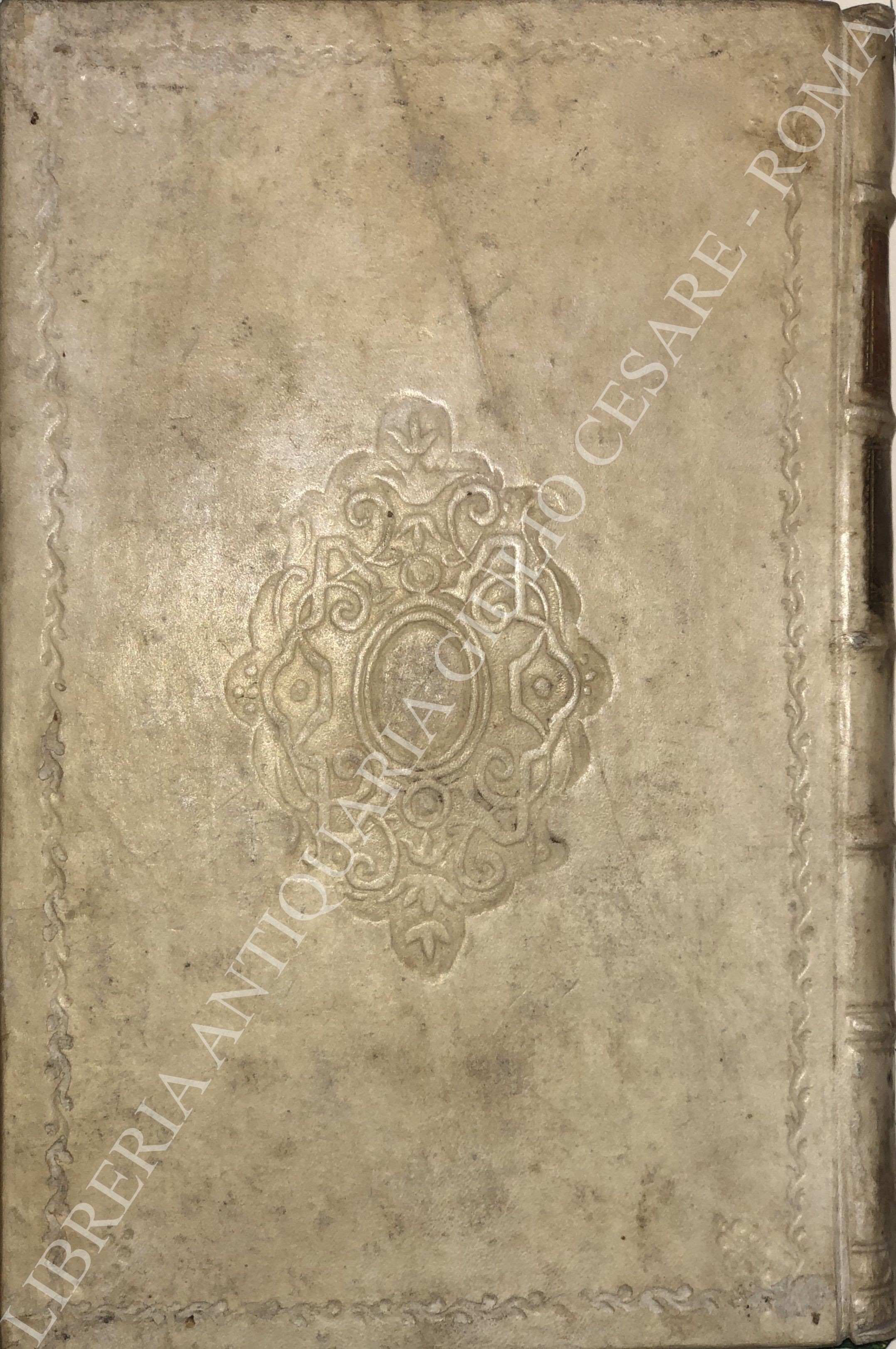 Rilegatura: pregevole p.perg. cordonata coeva con tasselli bicromatici al dorso e fregi a secco ai piatti