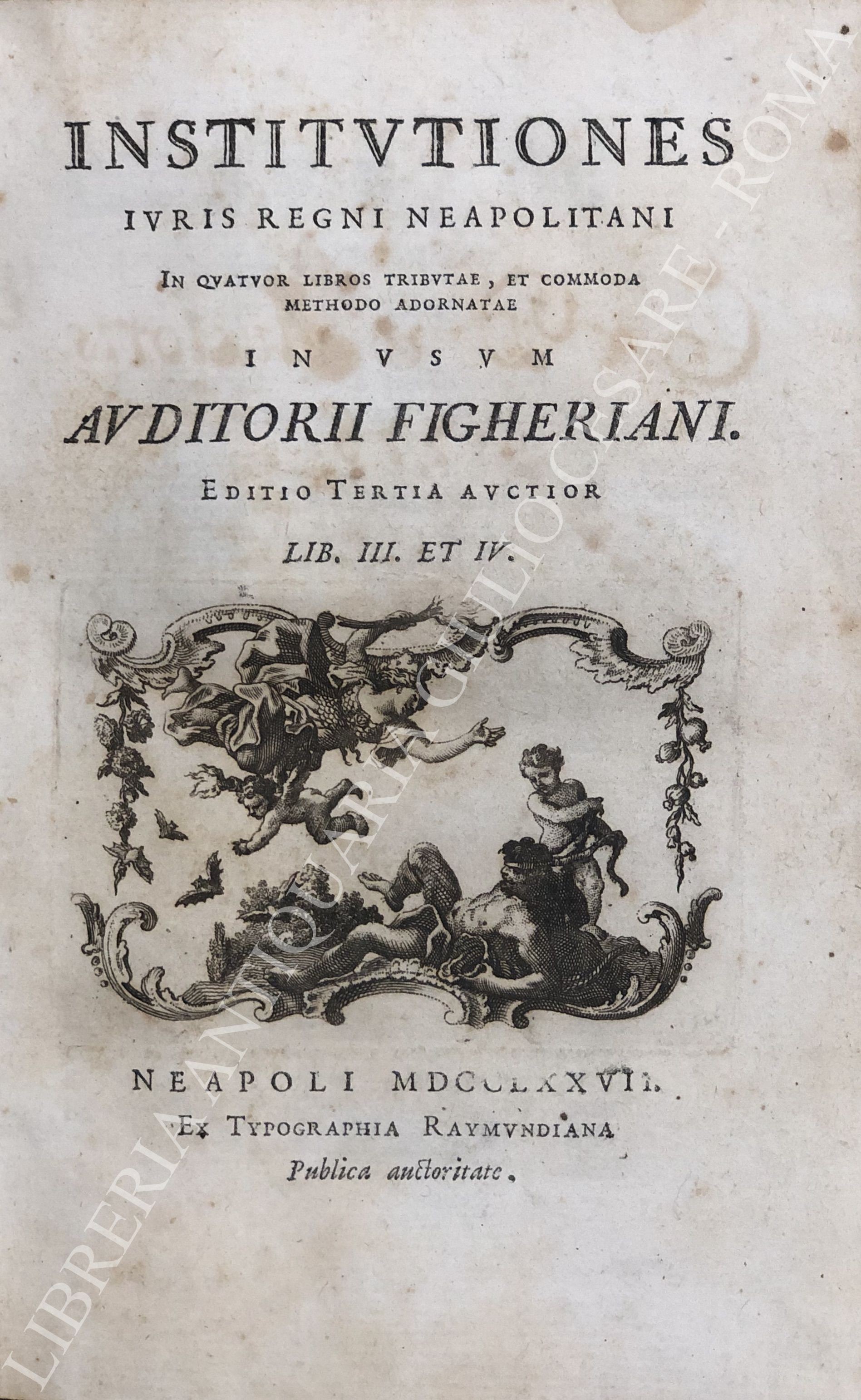 Institutiones Iuris Regni Neapolitani in quatuor libros tributae et commoda methodo adornatae in usum auditorii figheriani. Lib. III et IV