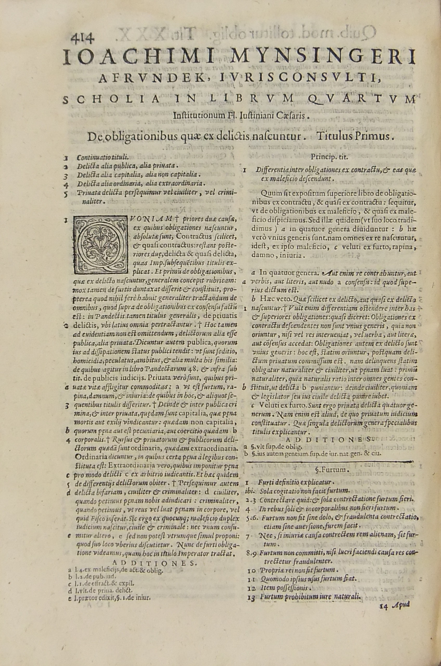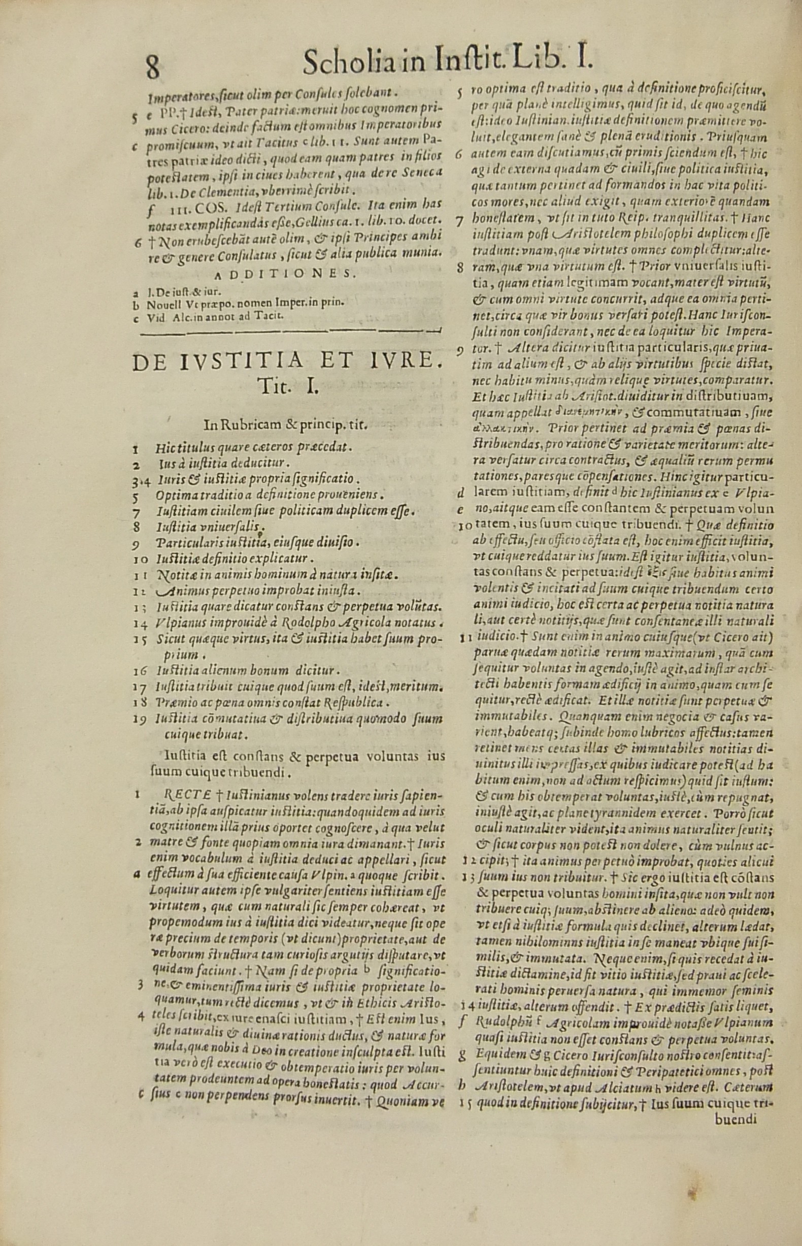 Apotelesma sive corpus perfectum scholiorum ad Quatuor Libros Institutionum Iuris Ciuilis. Hac novissima editione multo uberios & emendatius quĂ m antea excussum.. Adiectis rerum memorabilium et Paragraphorum Indicibus singolaribus, necnon elenchorum codicis atque Pandectarum, quae inter explicandum enucleantur