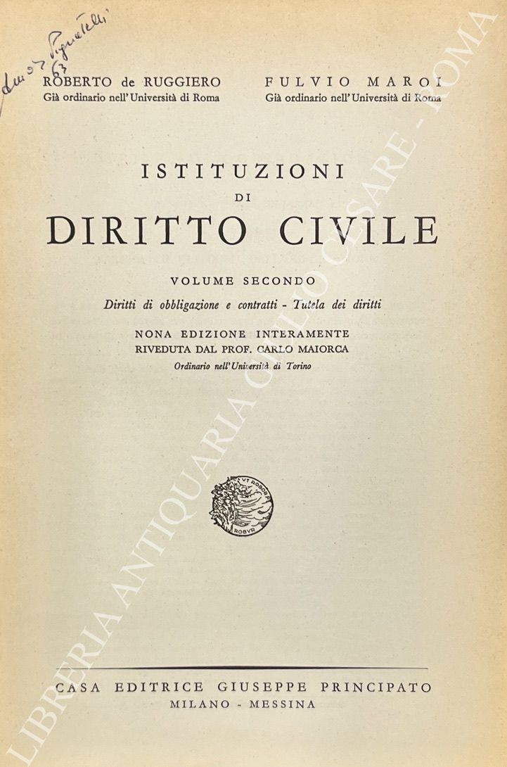 Istituzioni di diritto civile. Vol. I - Introduzione e parte generale - Diritto delle persone - Diritti di famiglia - Diritto ereditario - Diritti reali. Vol. II - Diritti di obbligazione e contratti - Tutela dei diritti. Nona edizione interamente riveduta dal prof. Carlo Maiorca