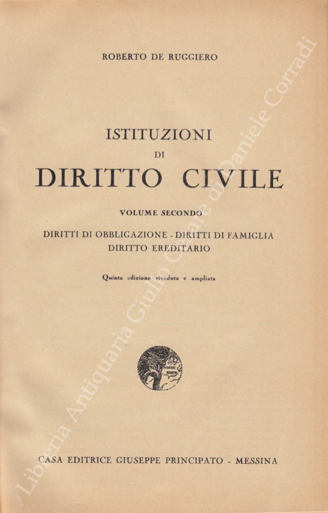 Istituzioni di diritto civile. Vol. I - Introduzione e parte generale. Diritto delle persone diritti reali e possesso. Vol. II - Diritti di obbligazione. Diritti di famiglia. Diritto ereditario