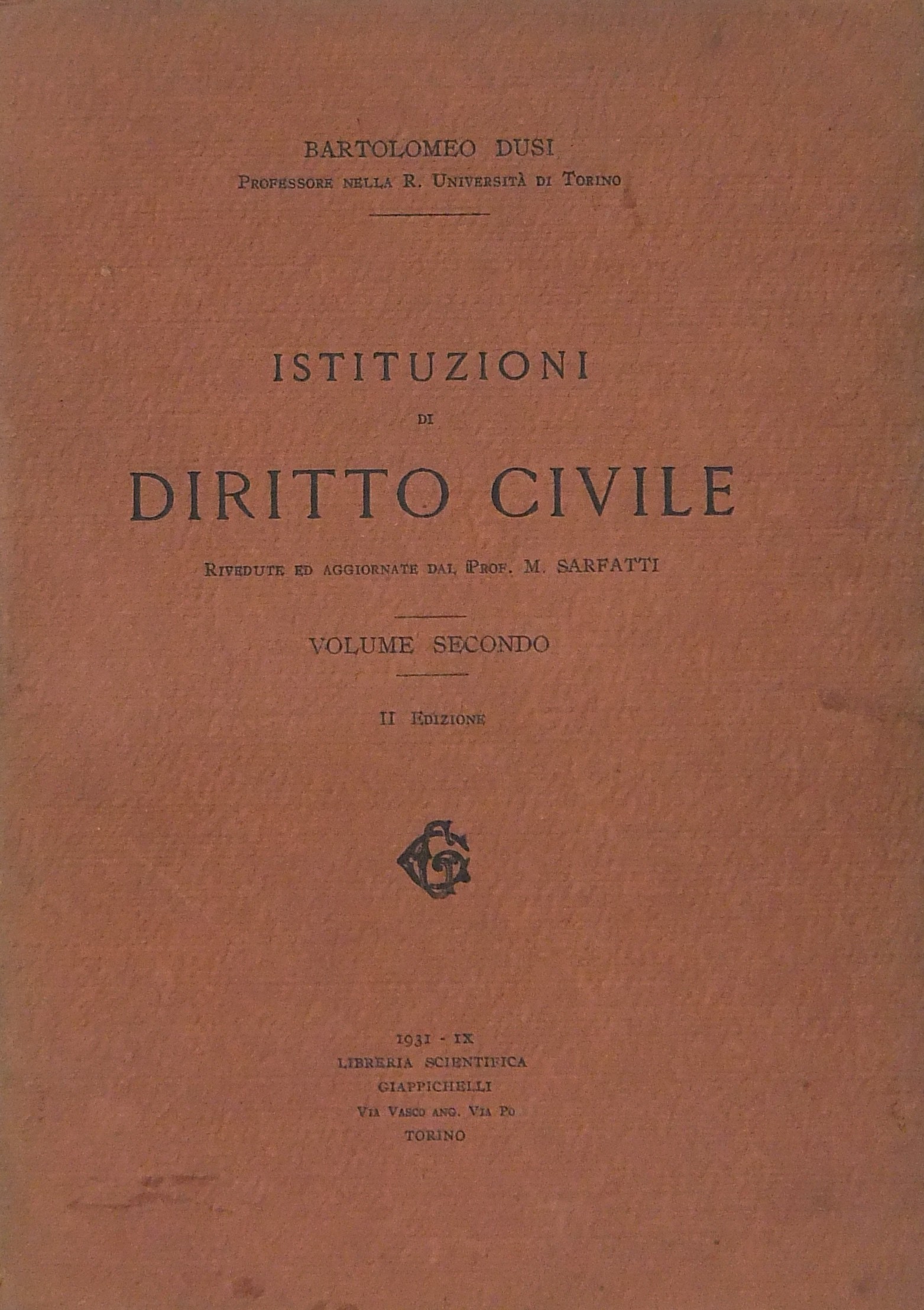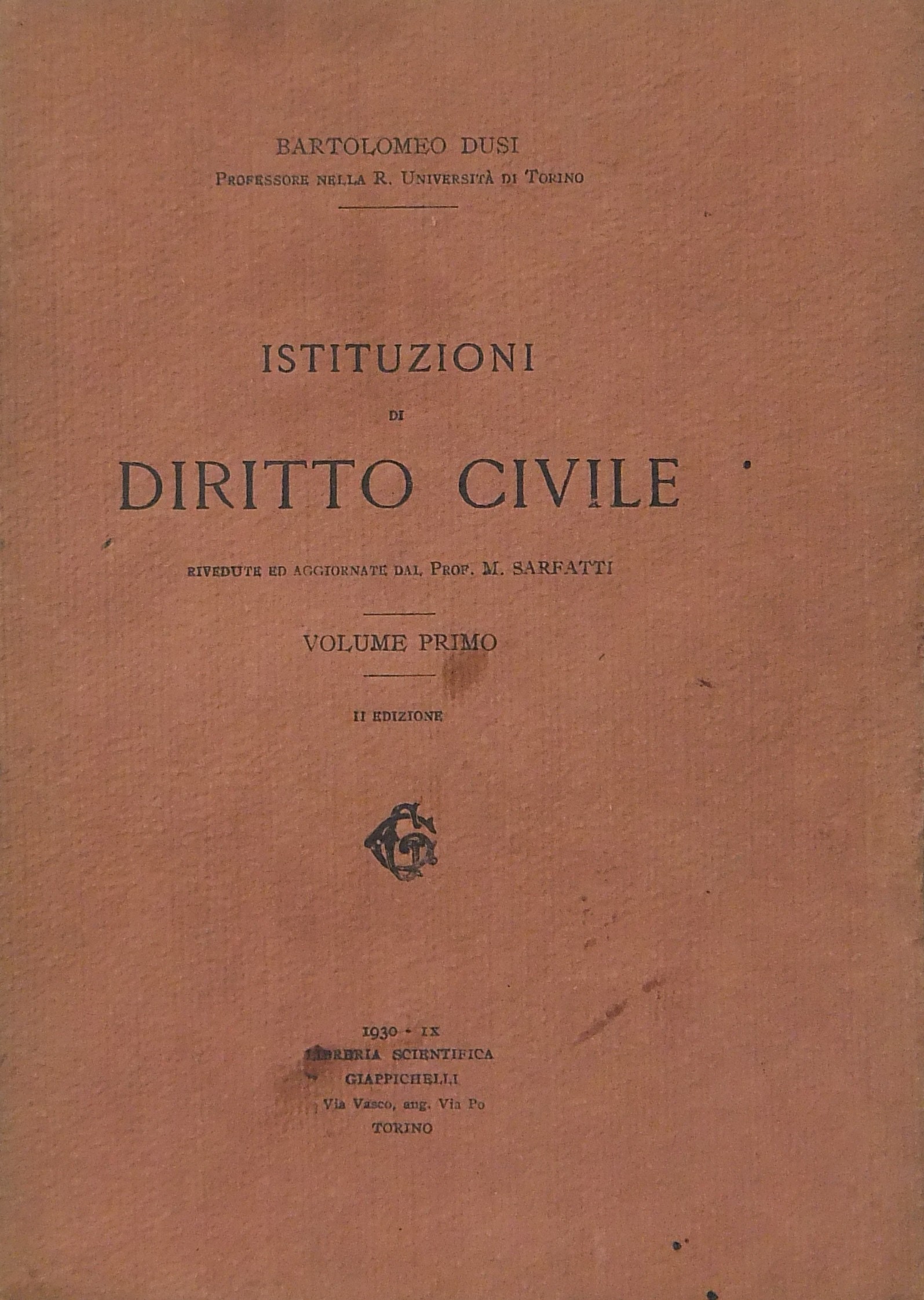 Istituzioni di diritto civile. Rivedute ed aggiornate dal Prof. M. Sarfatti