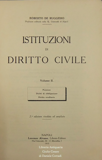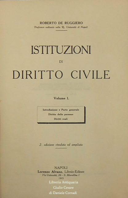 Istituzioni di diritto civile. Vol. I - Introduzione e parte generale. Diritto delle persone. Diritti reali. Vol. II - Possesso. Diritti di obbligazione. Diritto ereditario