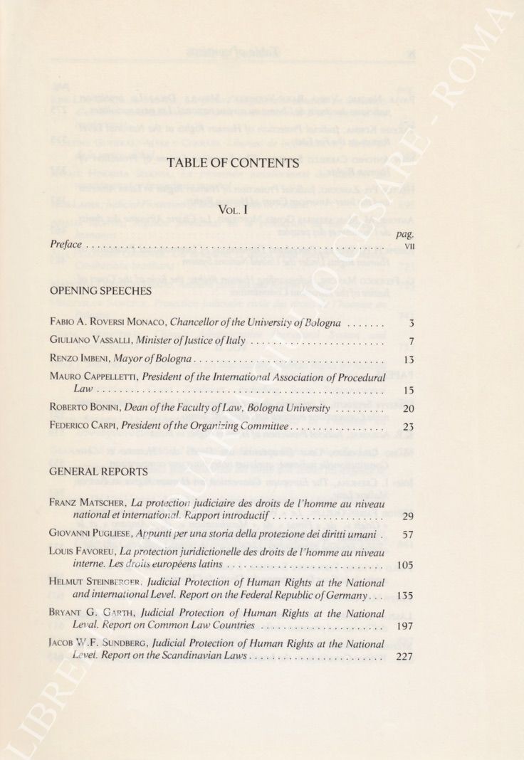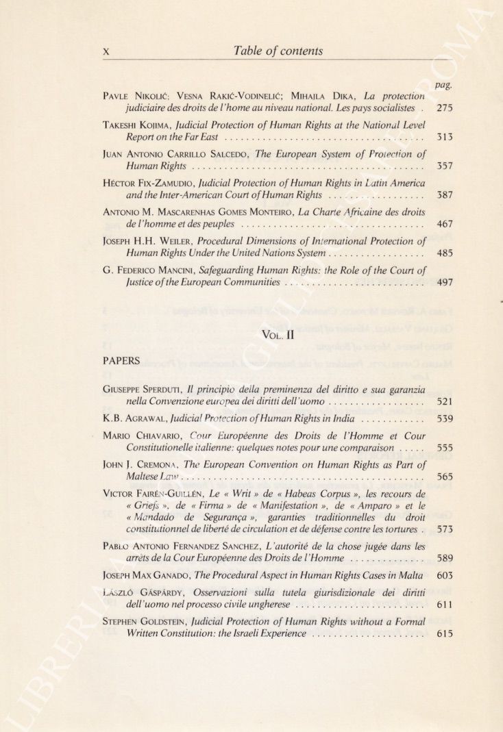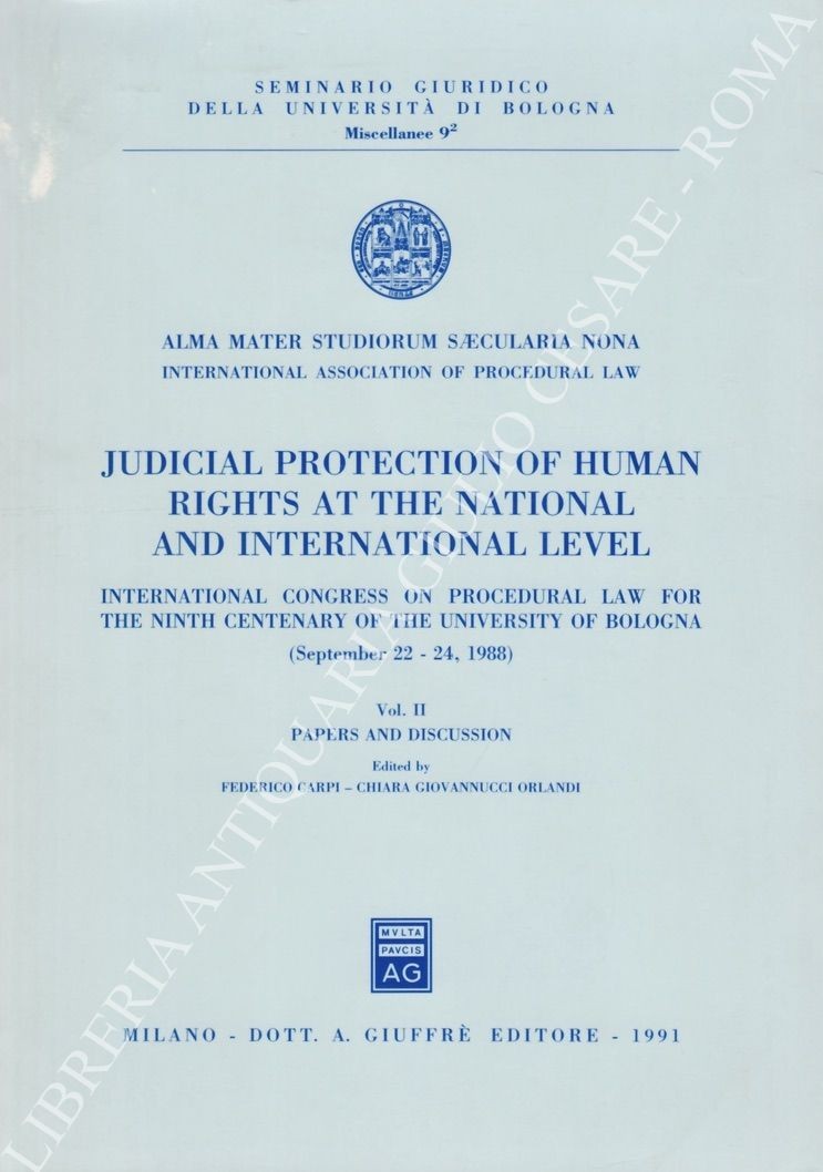 Judicial protection of human rights at the national and international level. International congress on procedural law for the ninth centenary of the University of Bologna (September 22 - 24 1988). Vol. I - General reports; Vol. II - Papers and discussion