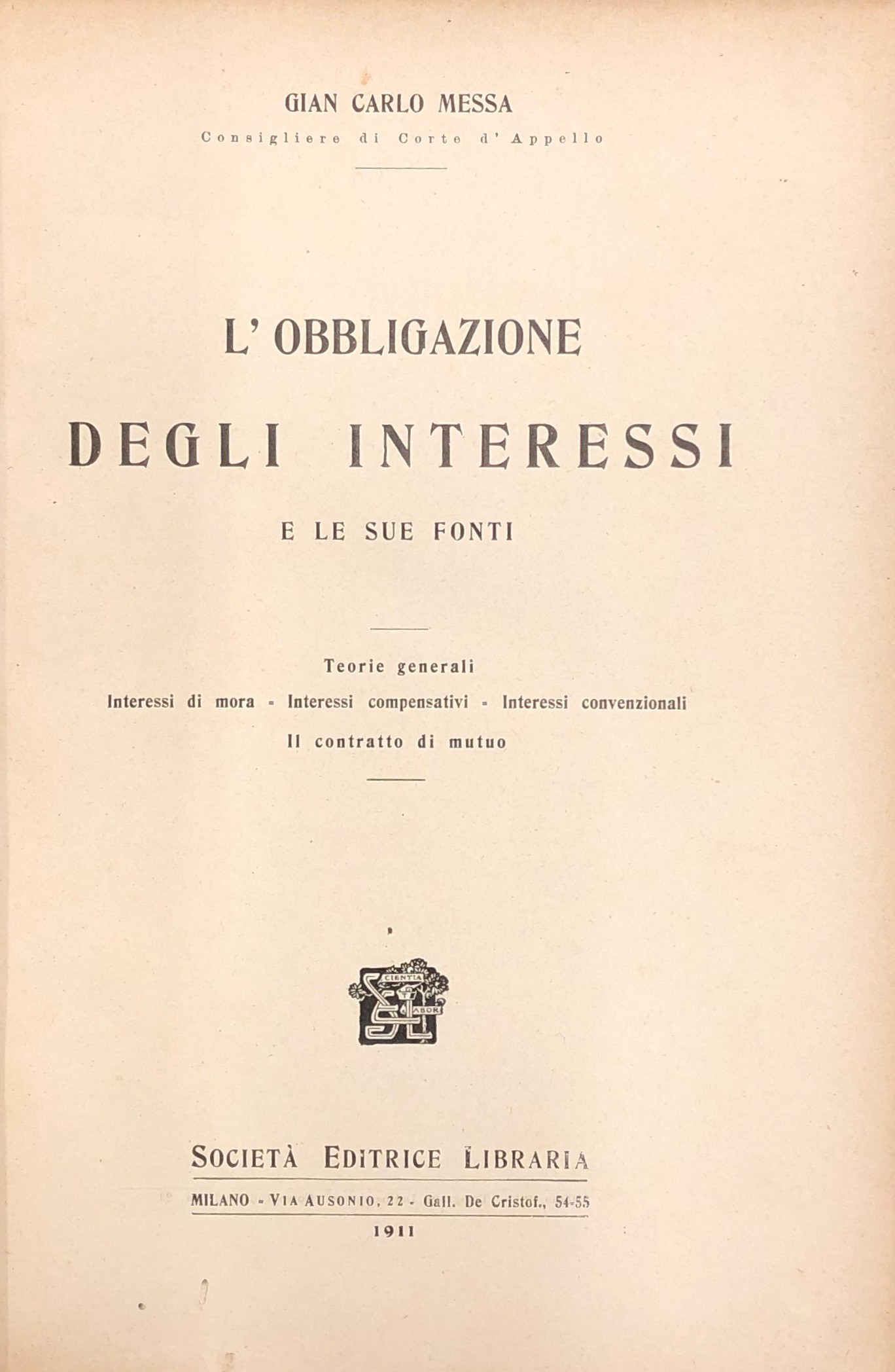 L'obbligazione degli interessi e le sue fonti. (Teorie generali - interessi di mora - interessi compensativi - interessi convenzionali - il contratto di mutuo)