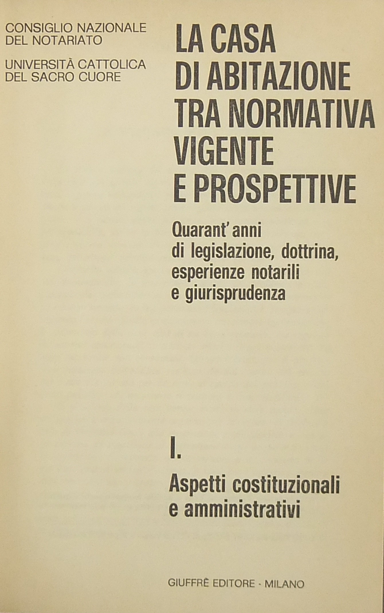La casa di abitazione tra normativa vigente e prospettive. Quarant'anni di legislazione dottrina esperienze notarili e giurisprudenza. Vol. I - Aspetti costituzionali e amministrativi