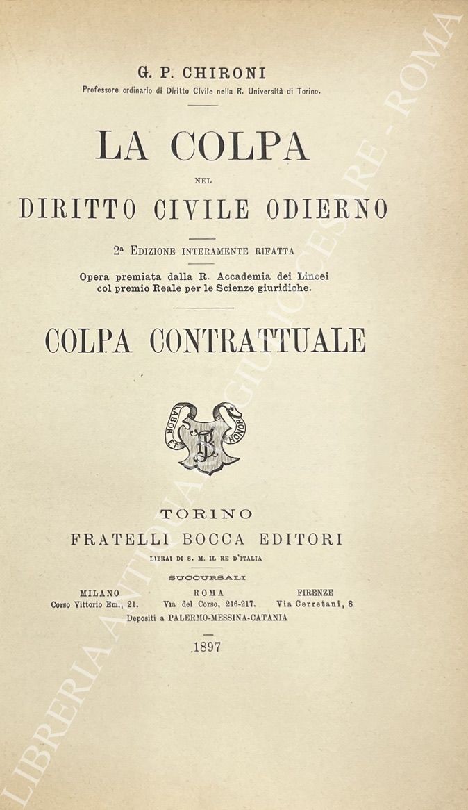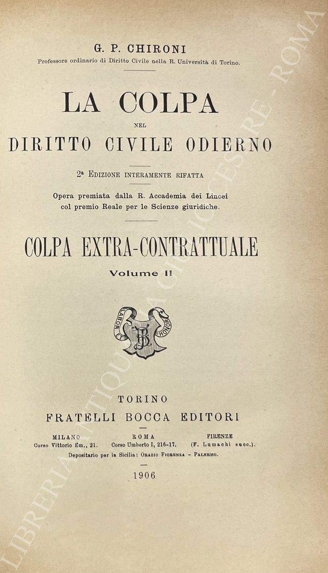 La colpa nel diritto civile odierno. Vol. I-II - Colpa extracontrattuale. Vol. III - Colpa contrattuale
