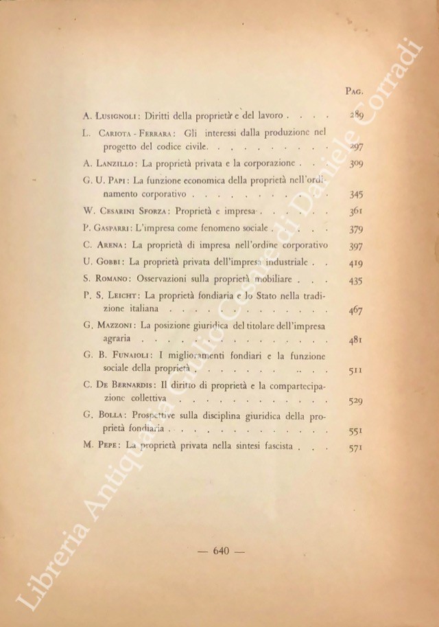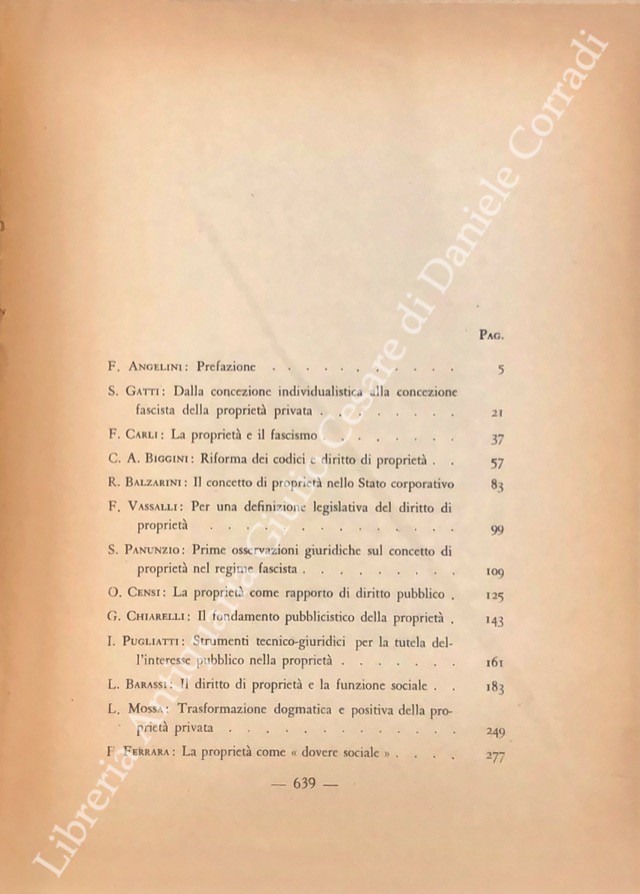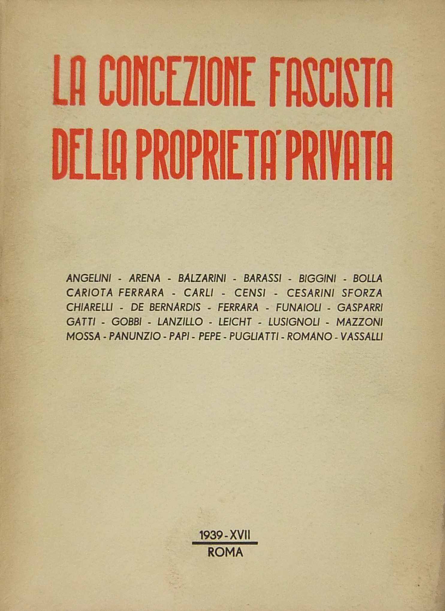 Scritti di: Angelini, Arena, Balzarini, Barassi, Biggini, Bolla, Cariota Ferrara, Carli, Censi, Cesarini Sforza, Chiarelli, De Bernardis, F.Ferrara, Funaioli, Gasparri, Gatti, Gobbi, Lanzillo, Leicht, Lusignoli, Mazzoni, Mossa, Panunzio, Papi, Pepe, Pugliatti, Santi Romano, F.Vassalli.