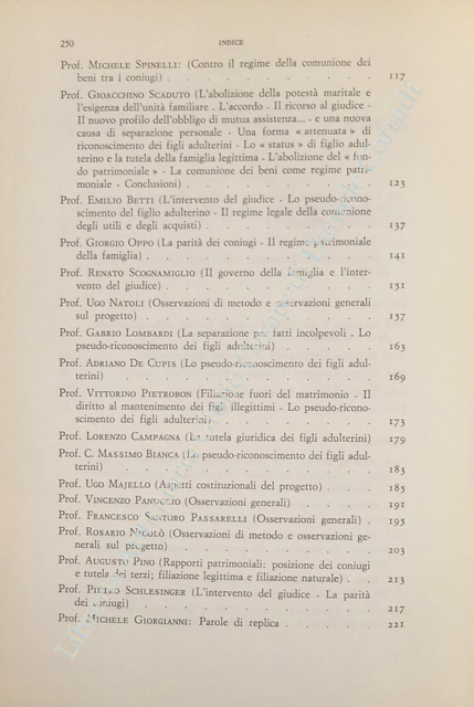 Betti E. - Bianca C.M. - Campagna L. - Carraro L. - De Cupis A. - Falzea A. - Ferri L. - Funaioli C.A. - Giorgianni M. - Jemolo C.A. - Lipari n. - Majello U. - Natoli U. - Nicolò R. - Oppo G. - Panuccio V. - Pietrobon V. - Pino A. - Rescigno P. - Rodotà S. - Santoro Passarelli F. - Scaduto G. - Schlesinger P. - Scognamiglio R. - Simonetto E. - Spinelli M. - Trabucchi A.