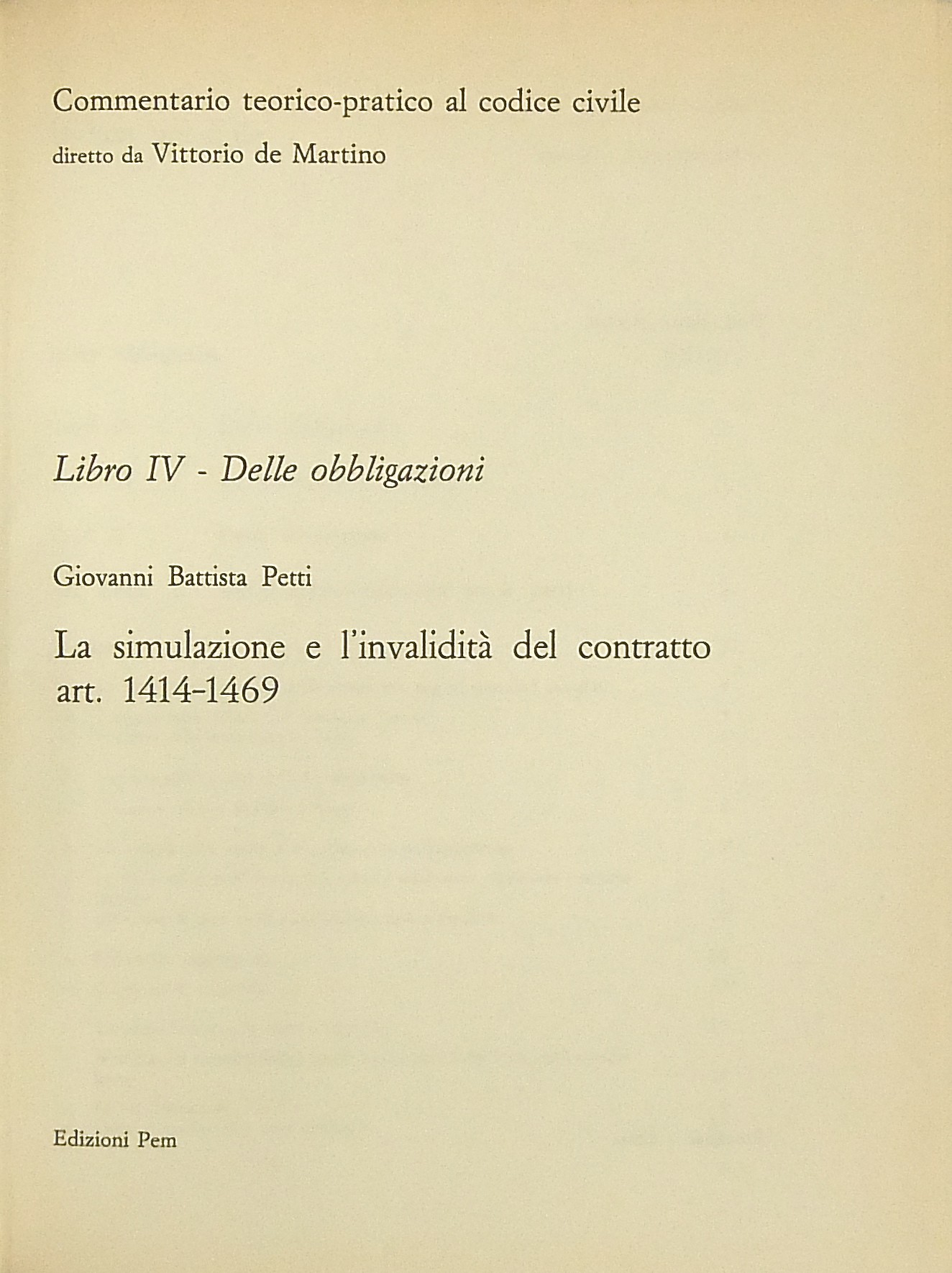 Numero Collana: Libro IV - Delle obbligazioni